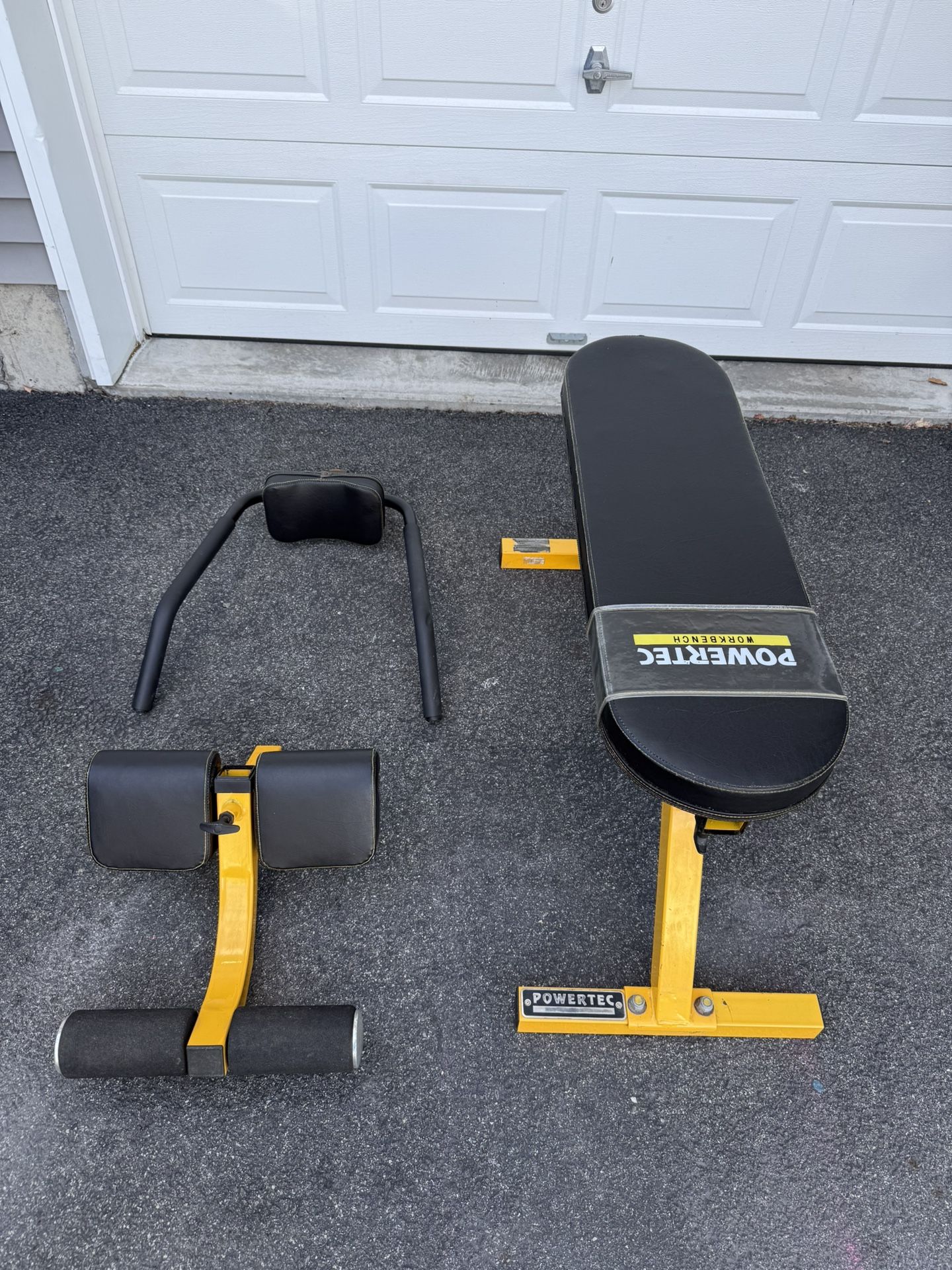 This POWERTEC Dual AB Bench is extremely versatile. Can be used as a flat, incline and decline bench. Comes with the leg catch attachment to do decline work and Sit Ups. Also comes with the head support and handle attachment to do leg raises for your lower abs. Pad is in phenomenal condition Lightweight yet sturdy bench.