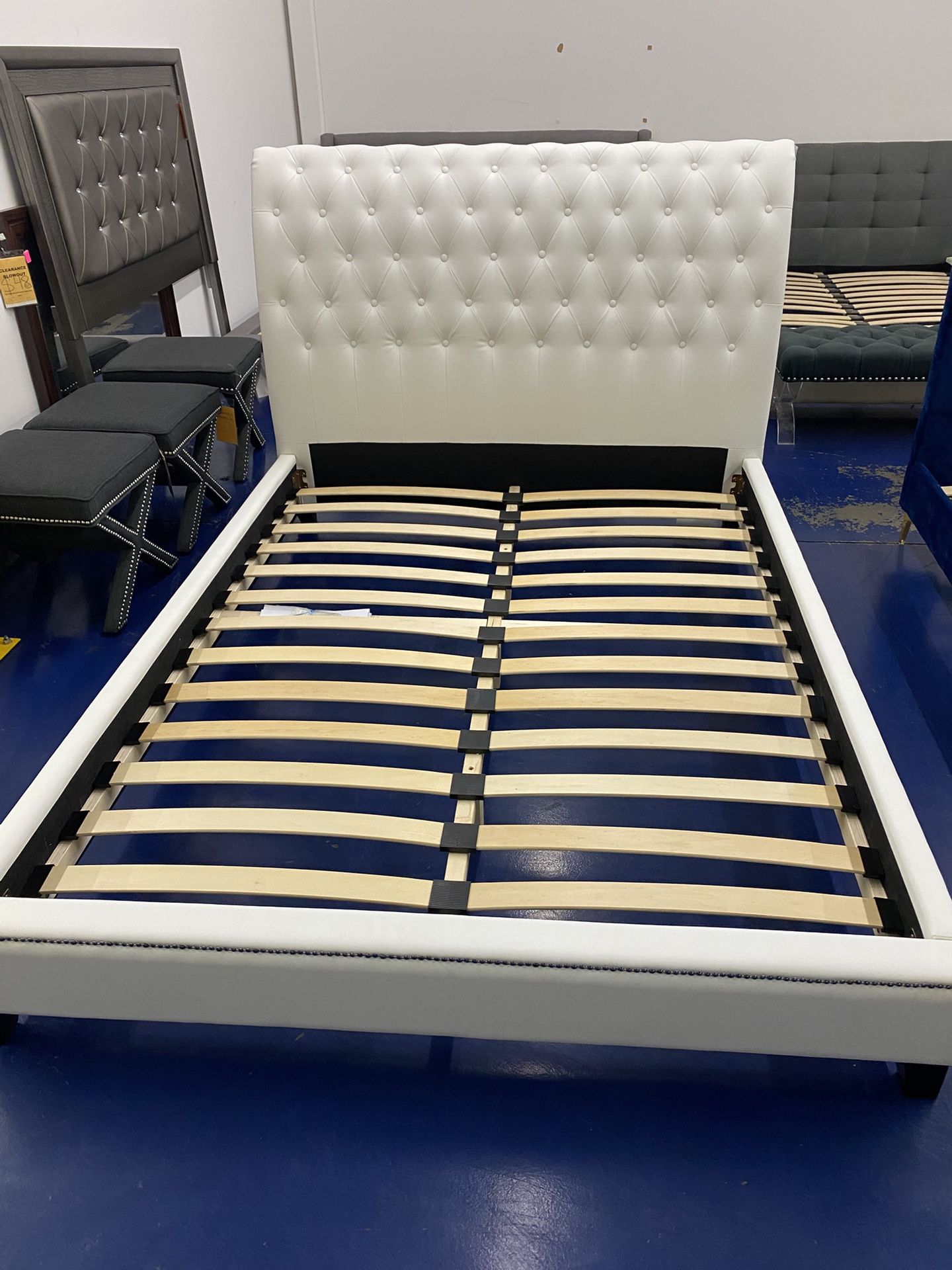 WI 4291 - tufted white modern bed with upholstered headboard