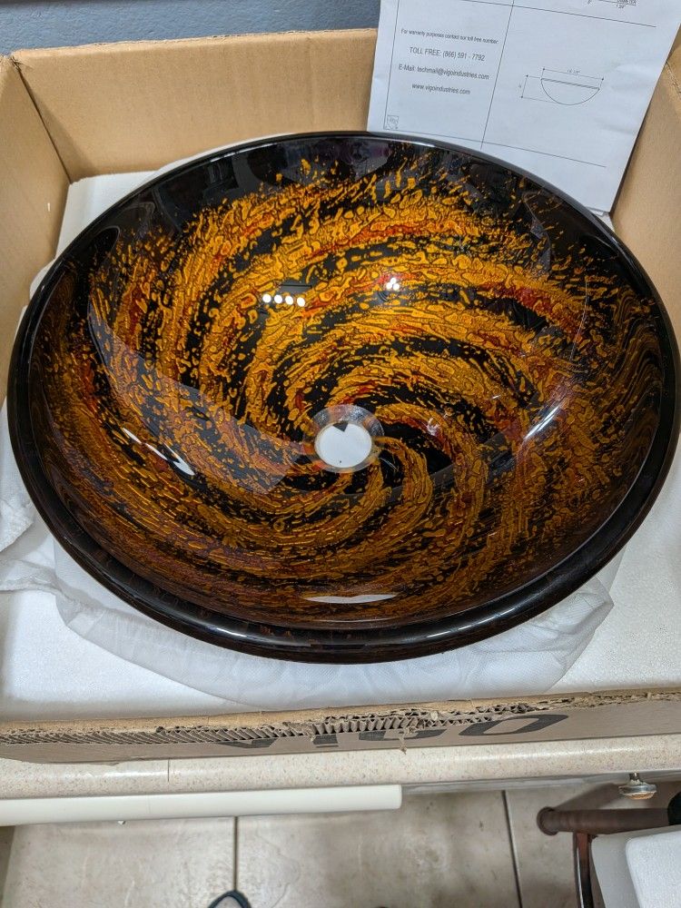 Northern Lights Glass Vessel Bathroom Sink. New In Box.