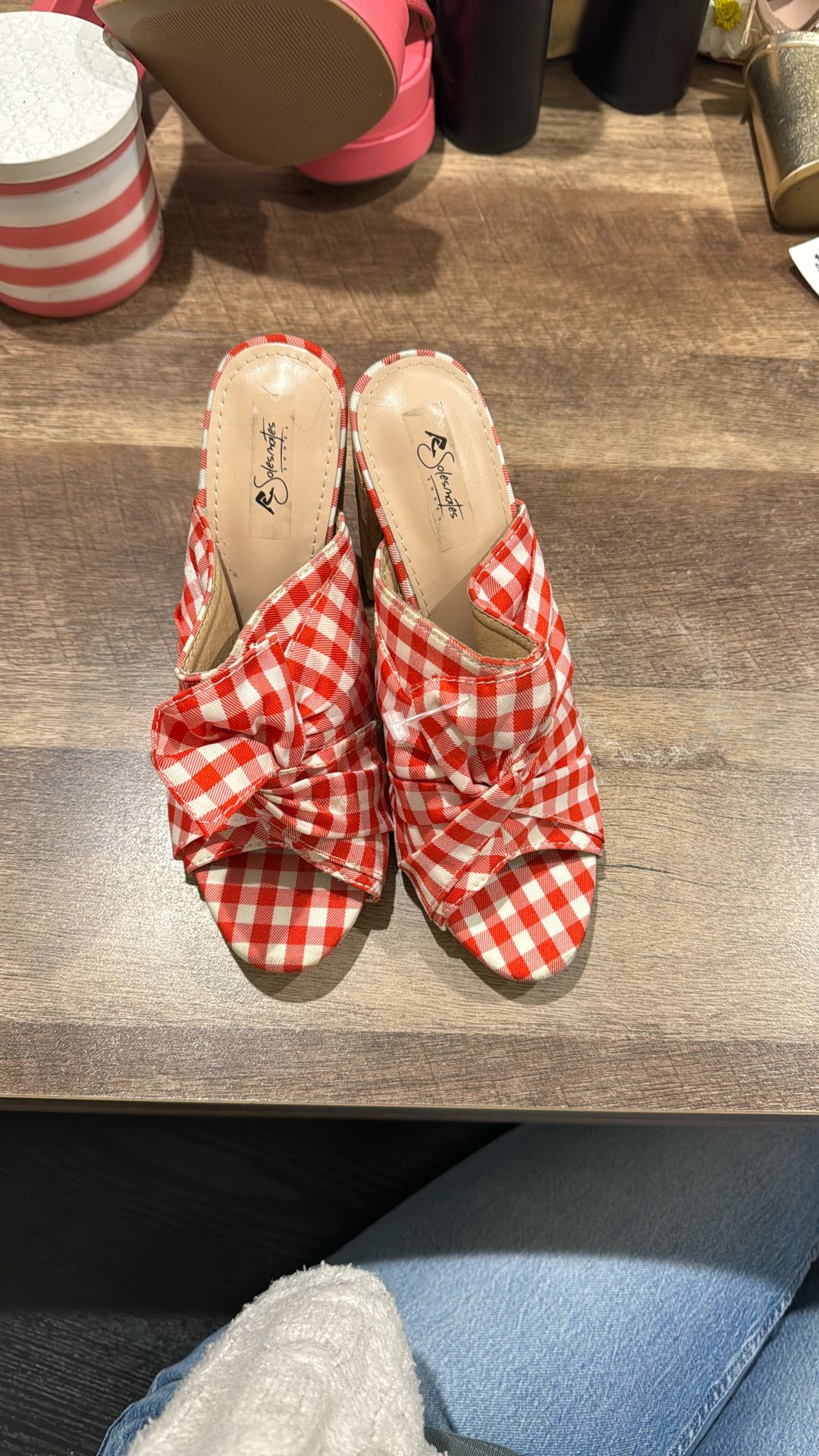Red Gingham Slide Heels