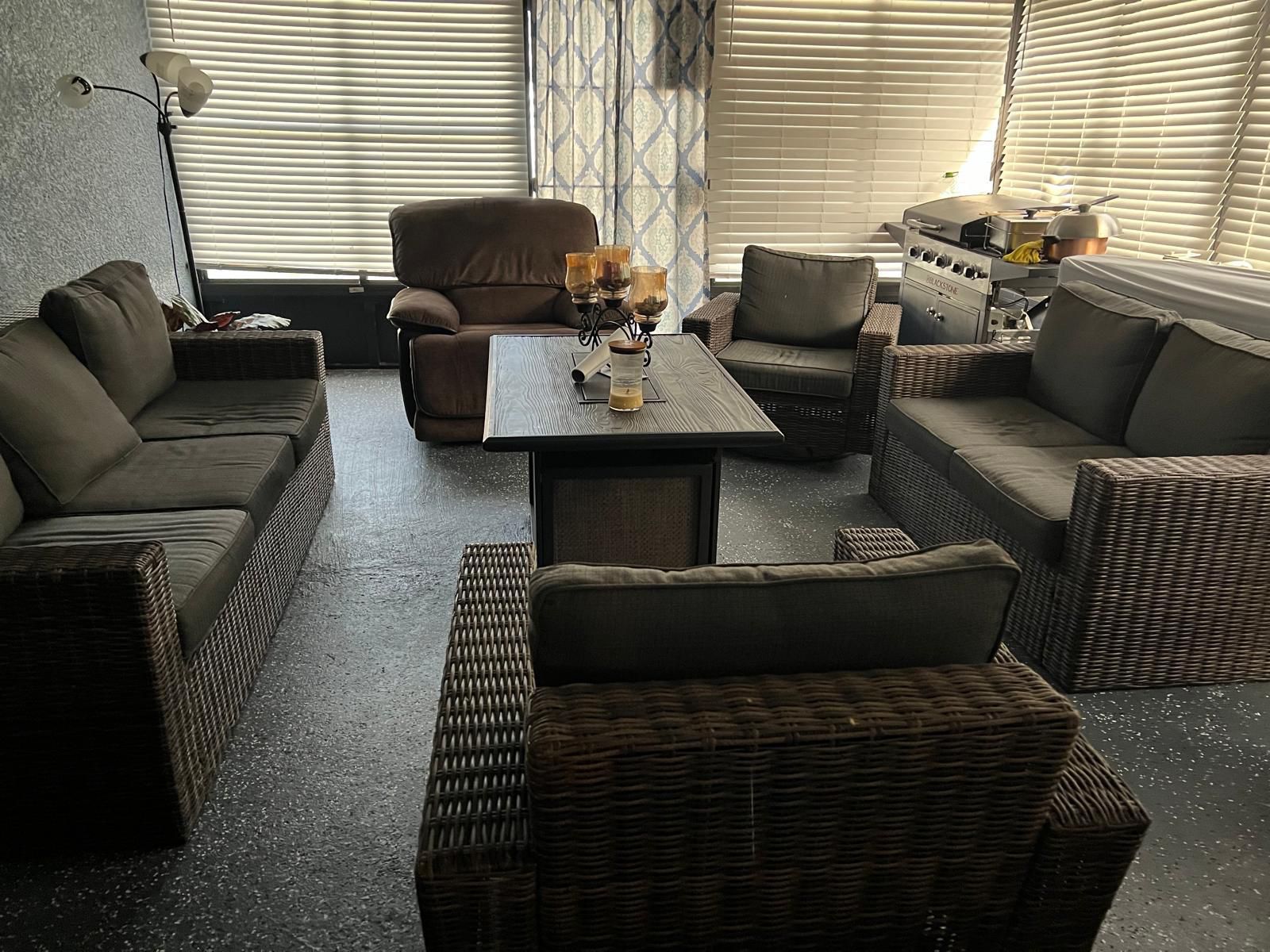 5 pc patio set & Bar with 6 stools . All in good condition , well taken care of (clean) Move out sale everything must go!