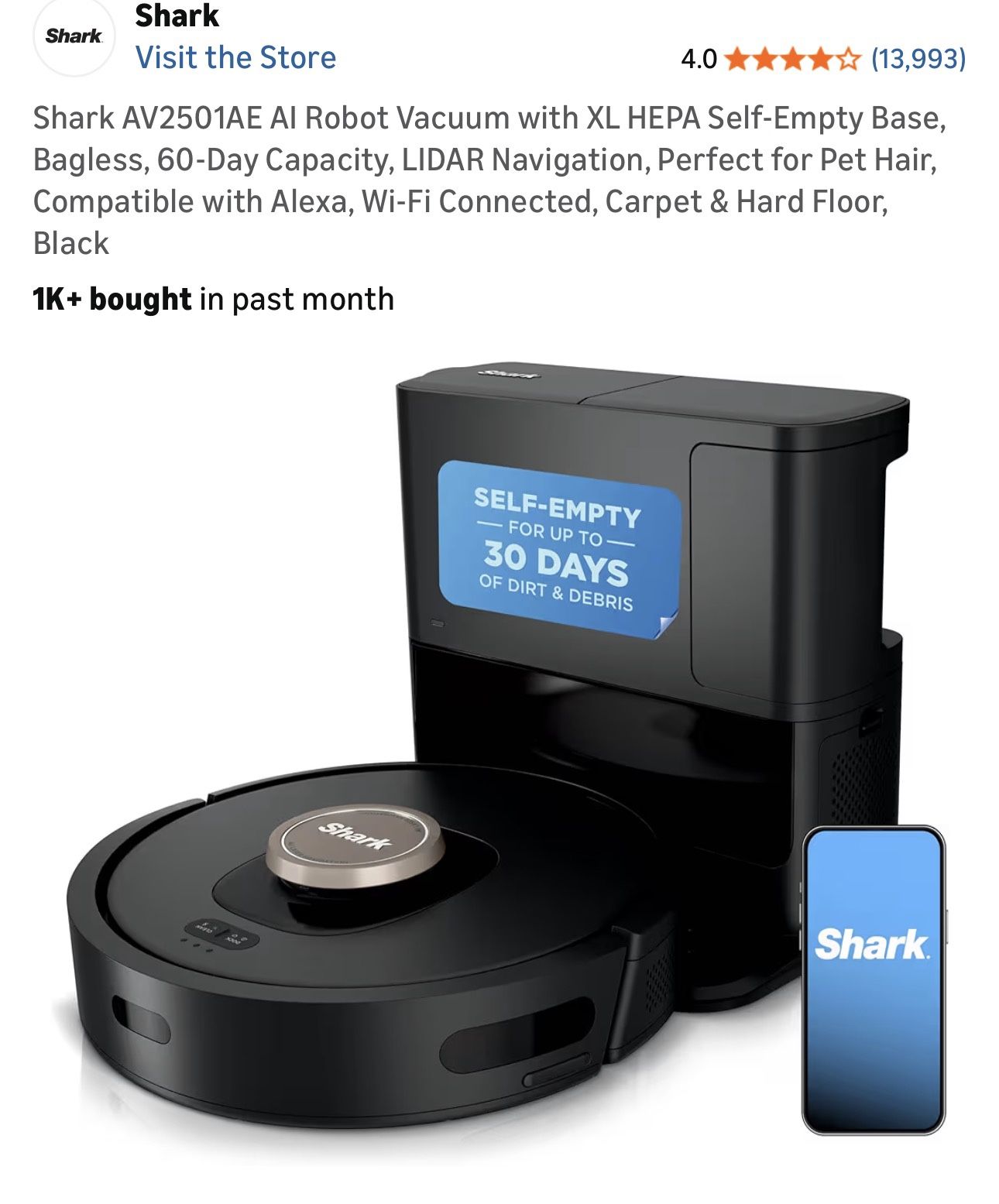 My mom gifted us this, but we never opened it as we’re moving to a new country that has different plugs. This brand new roomba vacuum is super great. Retails for $500. We’re selling it for 400. Shark AV2501AE AI Robot Vacuum with XL HEPA Self-Empty Base, Bagless, 60-Day Capacity, LIDAR Navigation, Perfect for Pet Hair, Compatible with Alexa, Wi-Fi Connected, Carpet & Hard Floor. Black in color.