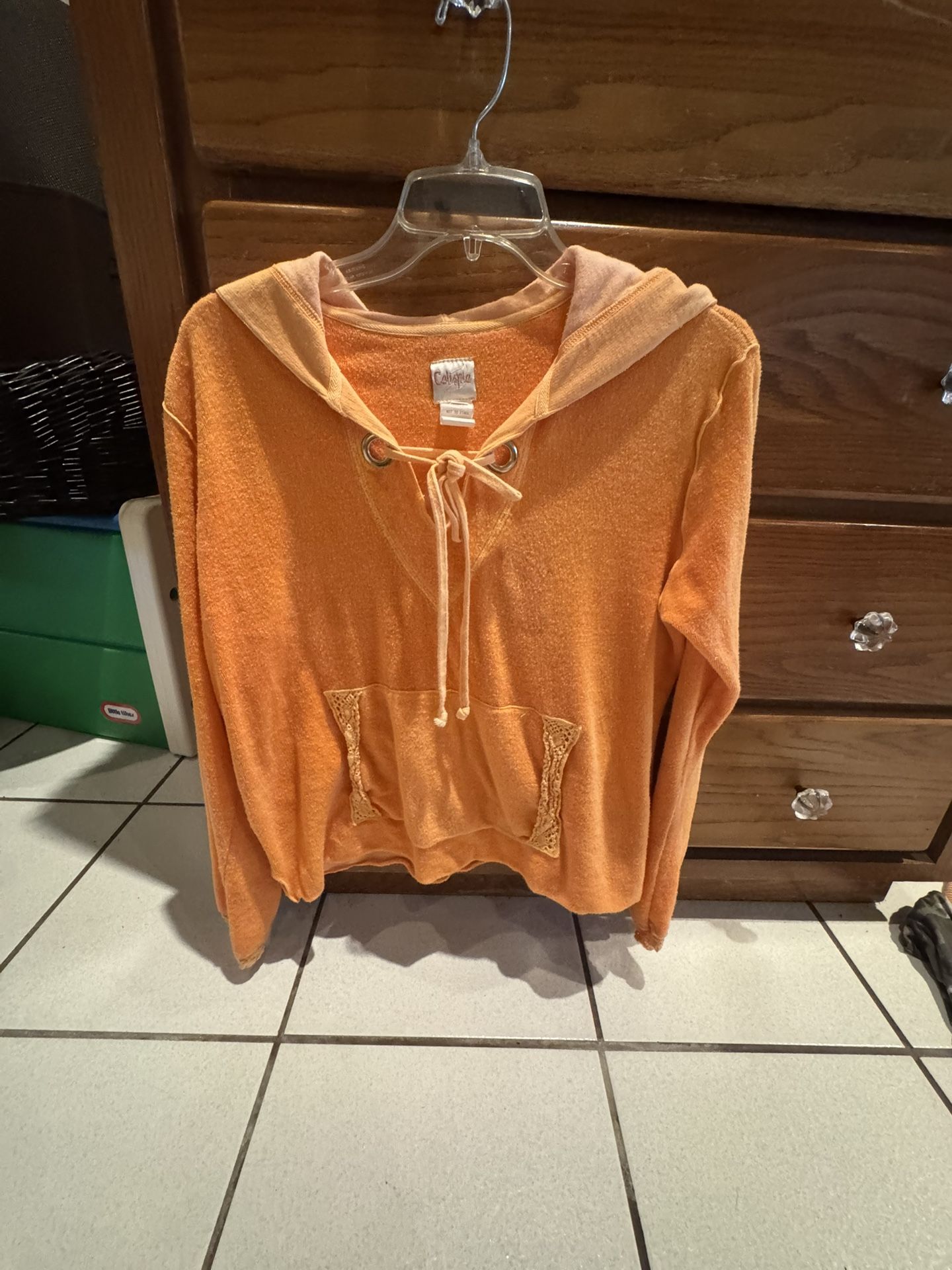 Orange Colispia hooded pullover sweatshirt Size M