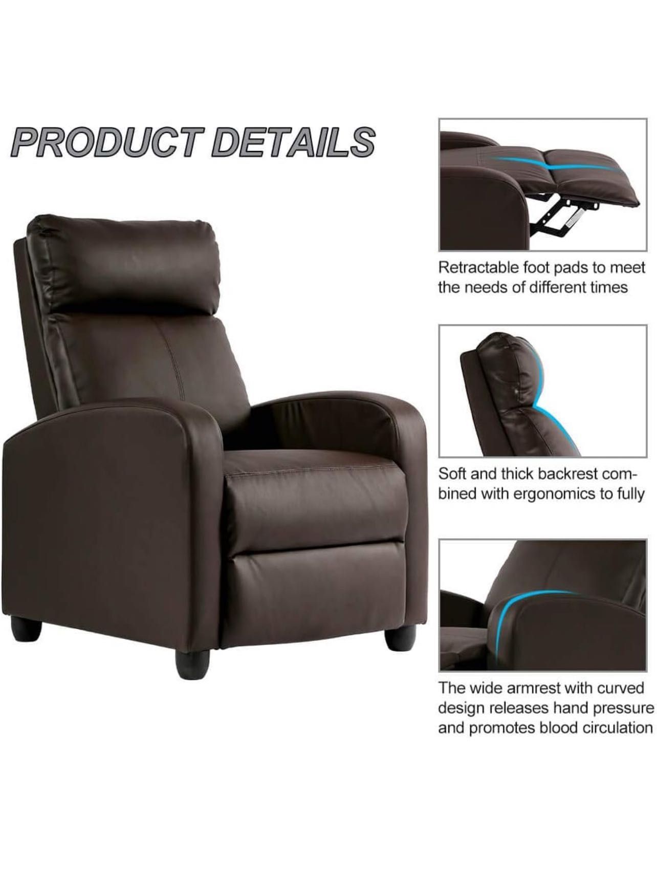 Leather Recliner Chair Living Room Chair Massage Reclining Chair Ergonomic Home Theater Seating Single Recliner Sofa Chair with Pu Leather Padded Seat Backrest for Living Room $90