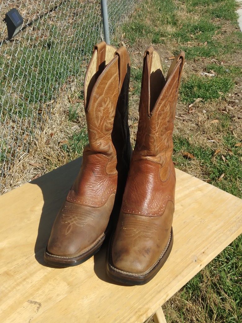 Great condition got alot of life in them size 24.5 women's size 8-8.5 wide split shaft makes it easier to put on and comfort for wider calves. Leather. Feel free to come try on with no obligation to buy. Locate a few minutes from st.marys university of culebra rd.