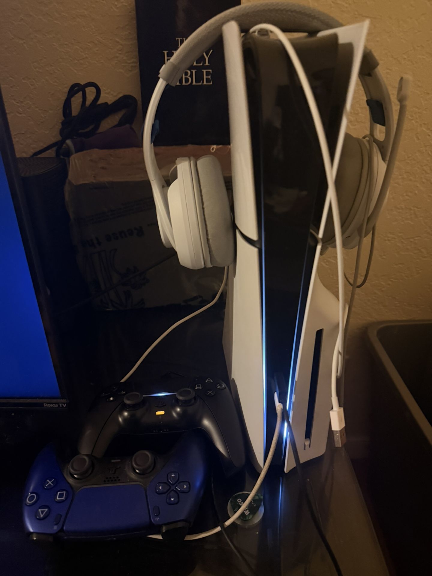 Selling my PlayStation slim with 840GB with my Blue and Black controller… reason for sell is I just don’t play as much and too caught up in work and trying to get money for a car had this bad baby for two years 600 OBO