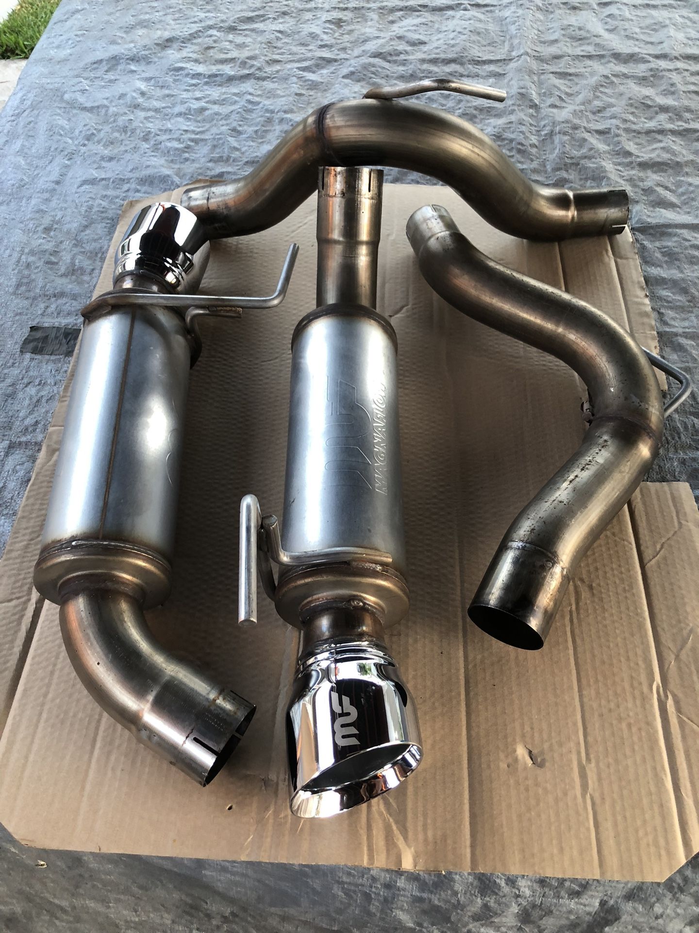 This exhaust is a Magnaflow Competition Axle-Back with H-Pipe & Resonators. Sounds great and has a deep muscle car sound. Had this exhaust in my car for almost 2 years. This exhaust is for a 2015-2017 Mustang GT 5.0, V8.