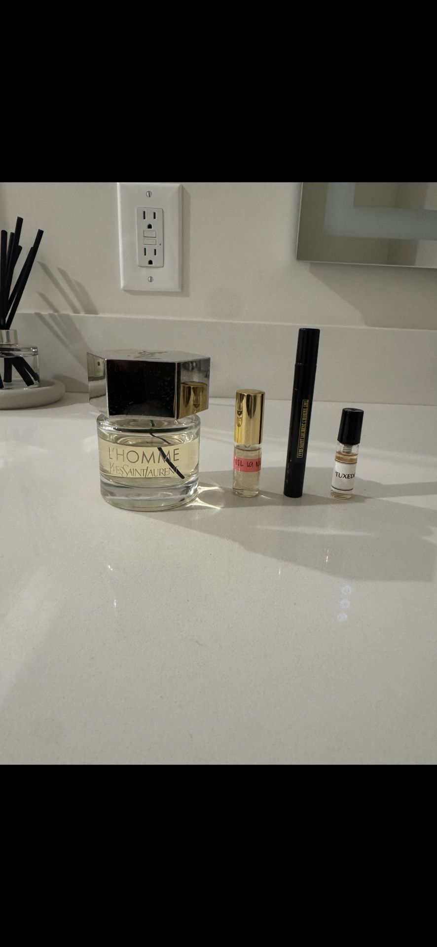 Selling 2oz/60ml Bottle of YSL L’homme edt bottle only for $60 also can include 3ml YSL Tuxedo, 5ml YSL La Nuit De l’homme , and 5ml YSL L’homme edt bundled for $70 altogether, any questions ask away! Bottle is atleast 85% full. Perfect pack for Date night, fresh/clean daily, and formal occasions, all authentic.