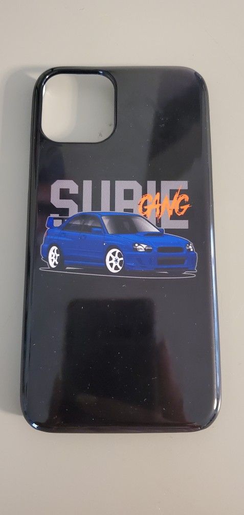 BRAND NEW! iPhone 11 Pro Phone Case. Color: Black Design: blue STI Writing: "Subie Gang" in grey and orange