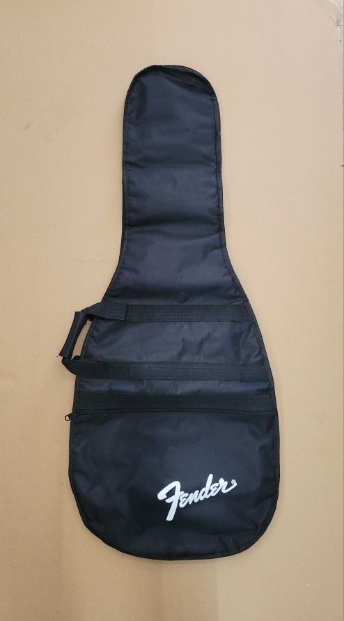 Fender Guitar Black Soft Carry Case Gig Bag. The Shoulder Strap Is NA Designed to fit most standard electric guitars, such as Stratocaster and Telecaster models. It features padded shoulder straps and a carrying handle for comfortable transport. Includes a zippered exterior pocket for accessories like picks, strings, and tuners. Made from durable black canvas material. Approximate Dimensions and Weight: 40" Full Length × 18" Arm Length × 16" W. 0.92lb Internal code no. 00236