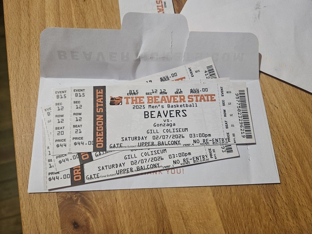 Need to sell these ASAP, so $80 for all 4! Oregon State vs Gonzaga Basketball Tickets! I have 4 tickets available for the Oregon State - Gonzaga game this Saturday in Corvallis. Game time is 3 pm. I have the physical tickets in hand, and I am in the Portland area. If you buy all 4 tickets I will give you a discount. Reach out if you're interested!