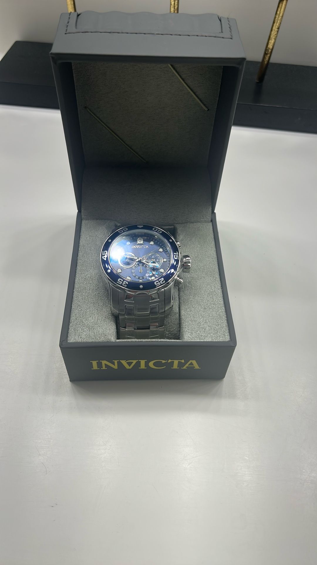 Brand New never used. Invicta 2-tone navy blue and silver stainless steel watch.
