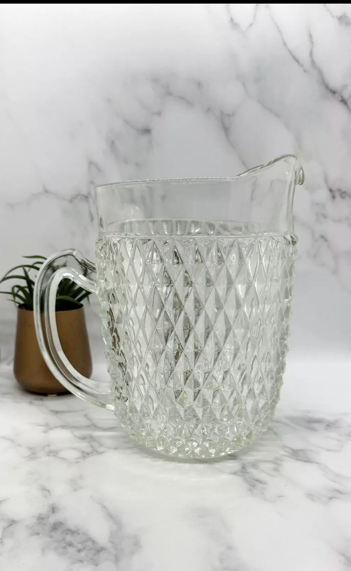 Vintage Heavy Indiana Glass Clear Diamond Point Pitcher 8" x 5.5"