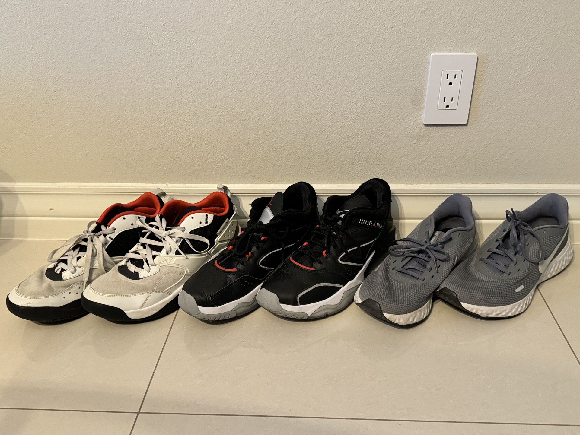 Shoes have been used. Grey shoes is missing a sole as shown in pictures. Each shoe is 15$. Let me know if you had any questions. Thanks