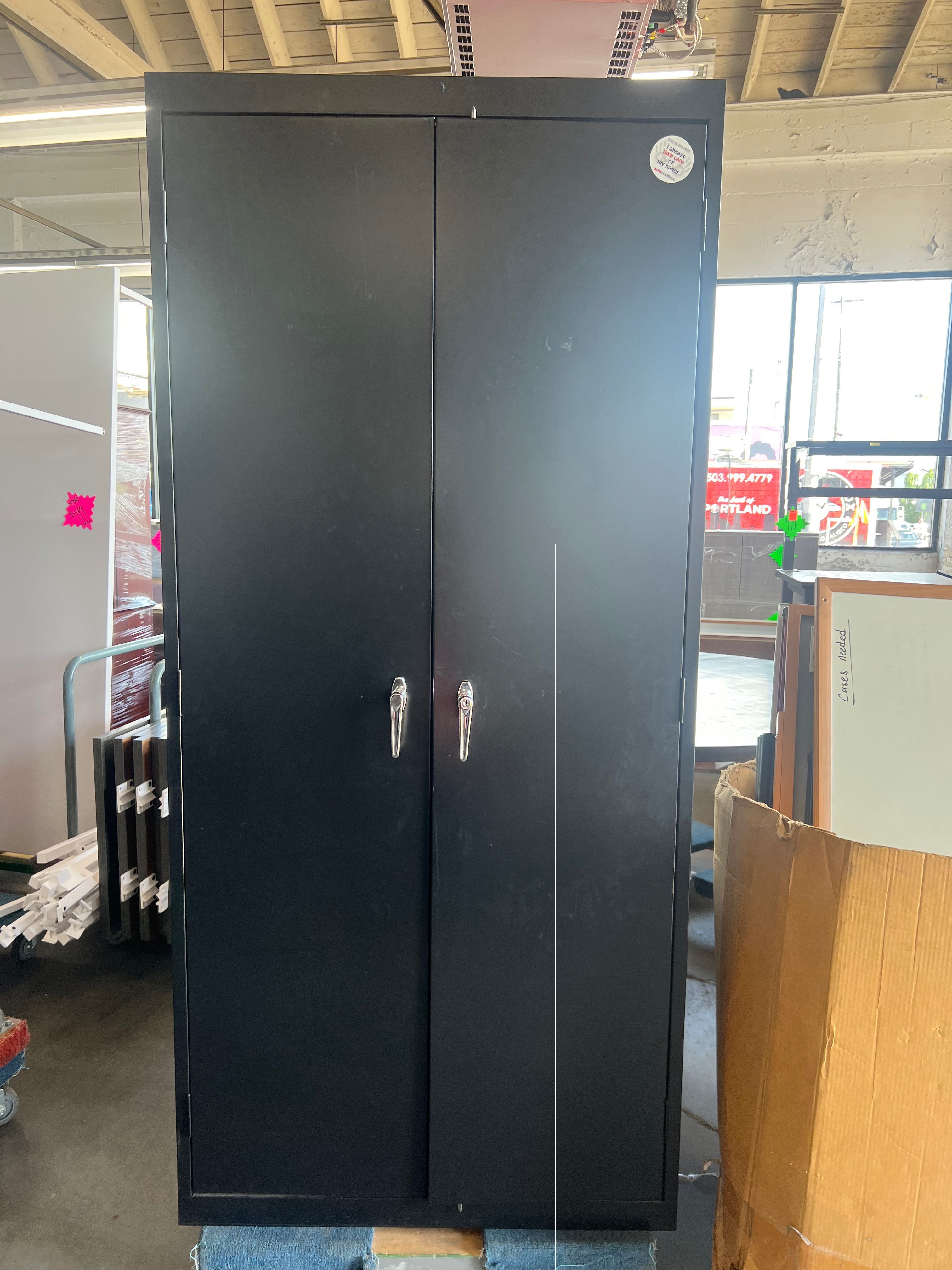 Black metal 2-door cabinet with shelves. Dimensions: 36"W x 18"D x 78"T Originally priced at $379, now on sale for $249. We are Northwest Office Liquidations! We have the largest inventory of high-quality, pre-owned office chairs and furniture in the PNW. We also carry new chairs and office furniture. Visit our showroom at 635 SE Hawthorne Blvd. in Portland or call for more info. Open 7 days a week: Mon - Sat 9 to 5:30 Sun 10 to 5 **Delivery available in Portland Metro for $89 flat fee** Financing now available on orders over $1,000! Apply online or in-store. Terms & Conditions apply. https://navitex.navitascredit.com/resource_centers/NorthwestOfficeLiquidations_RC