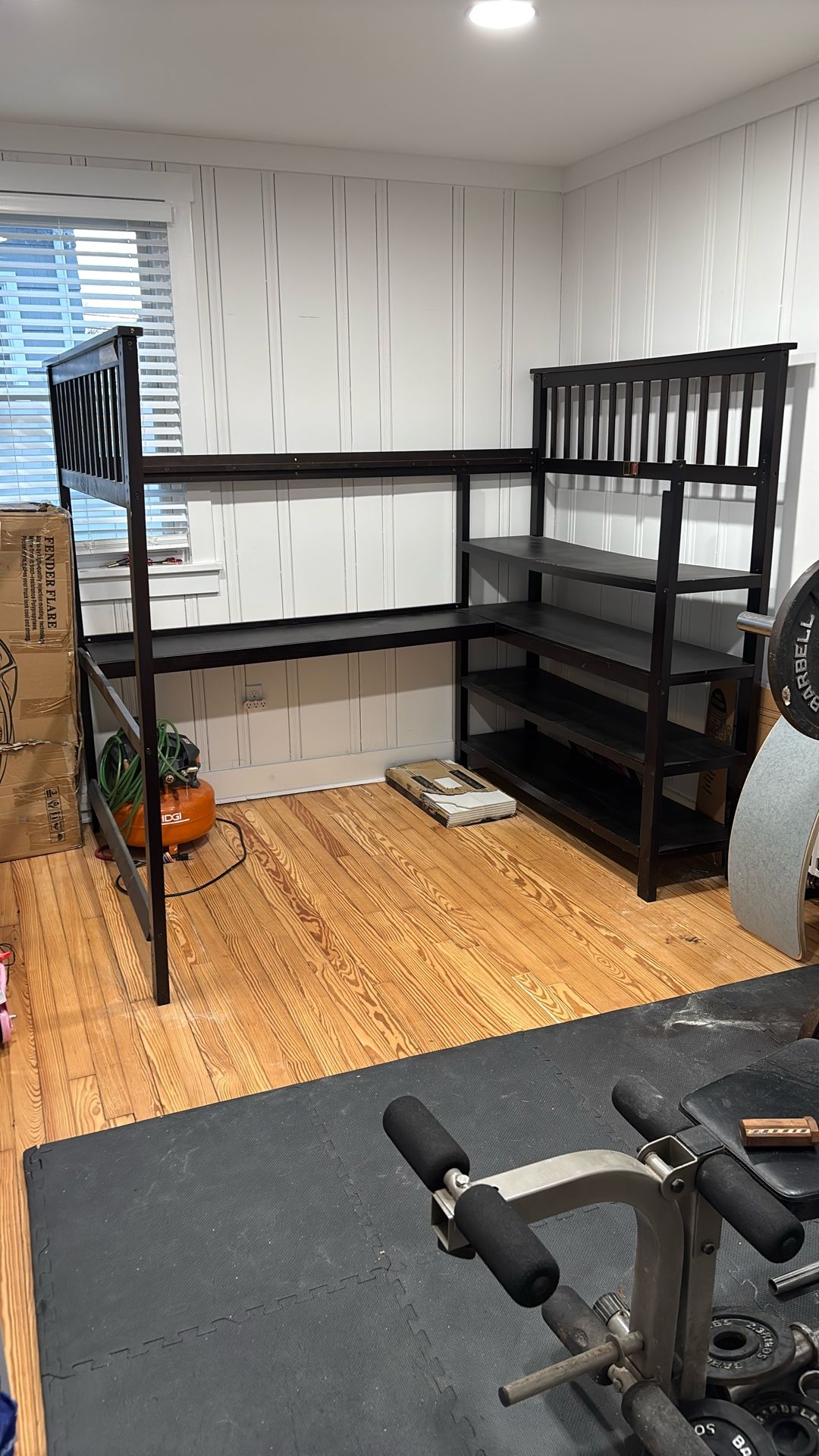 This is a full size high bed frame with a desk underneath have the pieces for the bed just have been using it as a desk