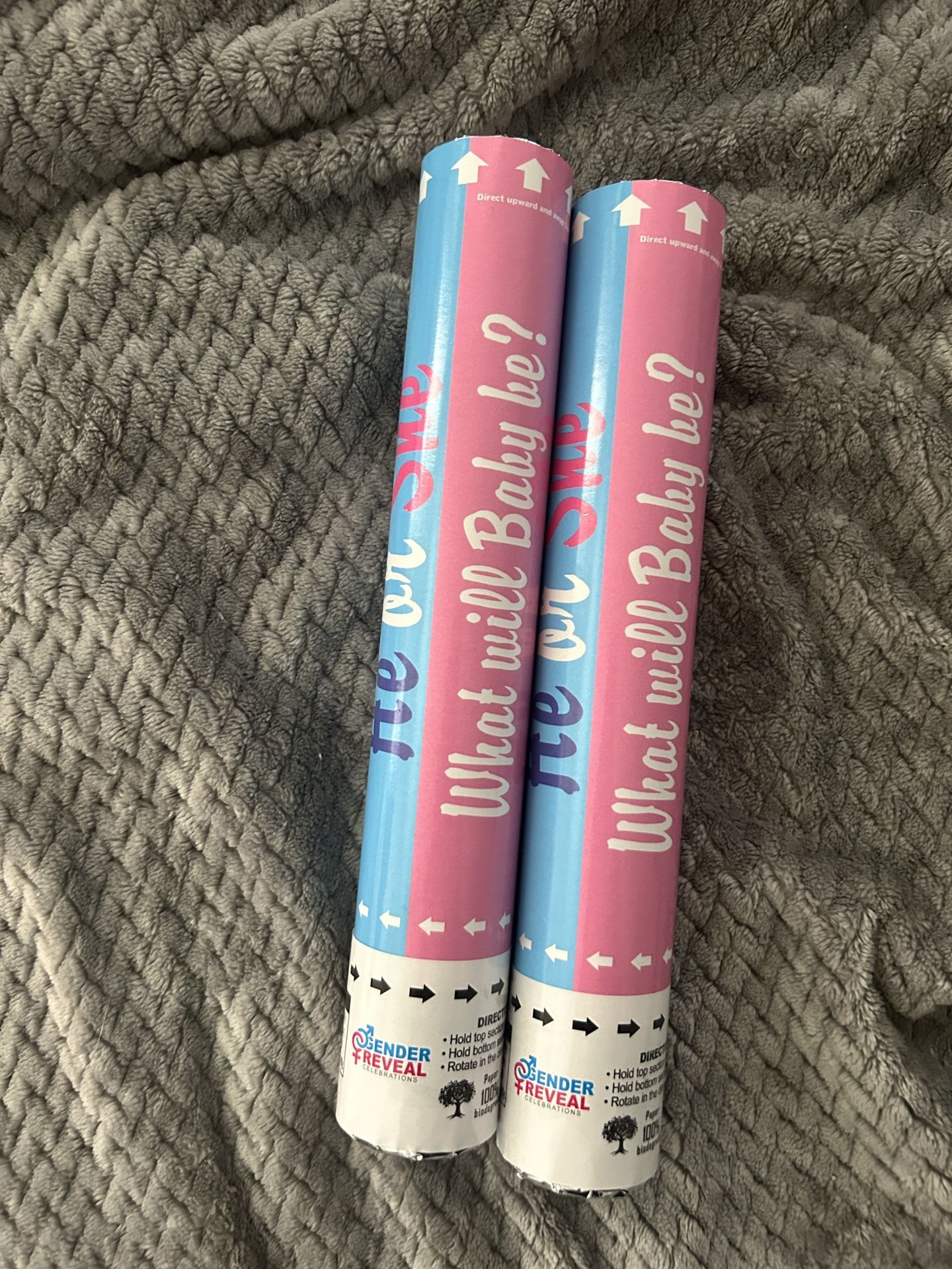 2 PINK gender reveal poppers, new extras we had left I do not have the sticker that cover color but any sticker big enough does the job