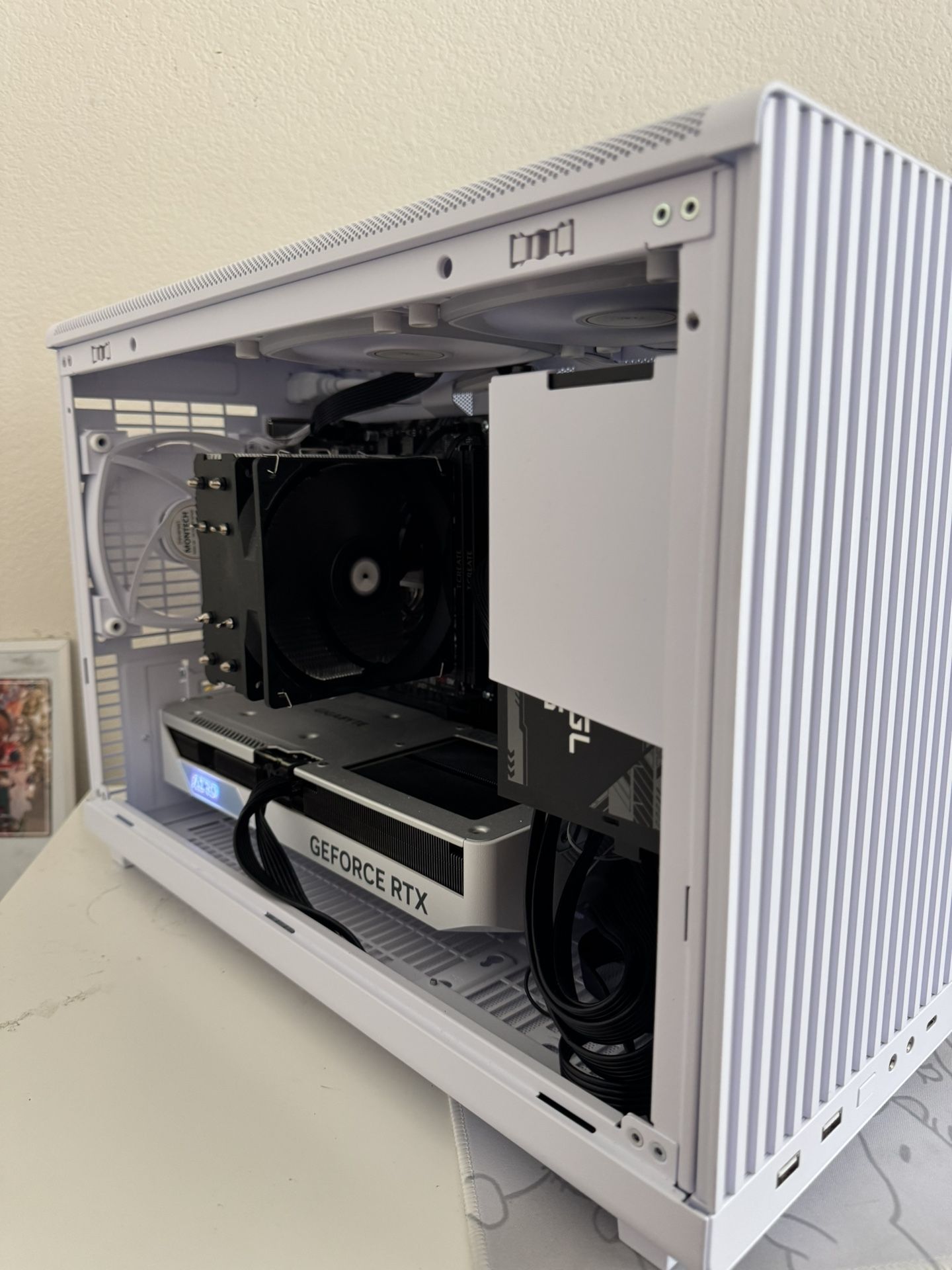 Rtx 4070 gigabyte white Ryzen 7600x Tb nvme 32gb ddr5 3 fans extra added Lian li a3 I also have a aula f75 and a wireless mouse and 165htz monitor I will throw in for 1400
