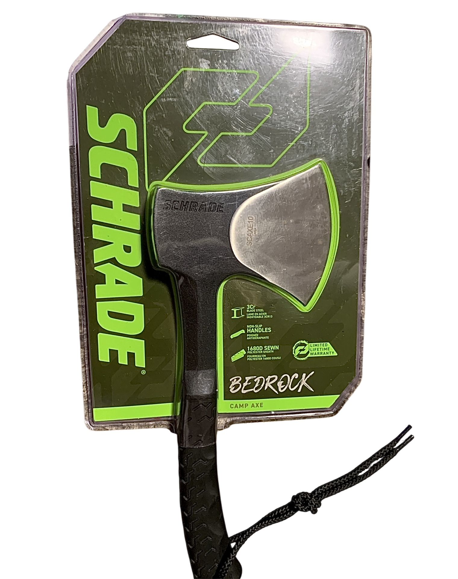 BEDROCK CAMP AXE DELTA SERIES 3CR13 BLADE STEEL • SATIN BLADE FINISH FLAT GROUND - NON-SLIP HANDLE - 16800 Polyester Sheath