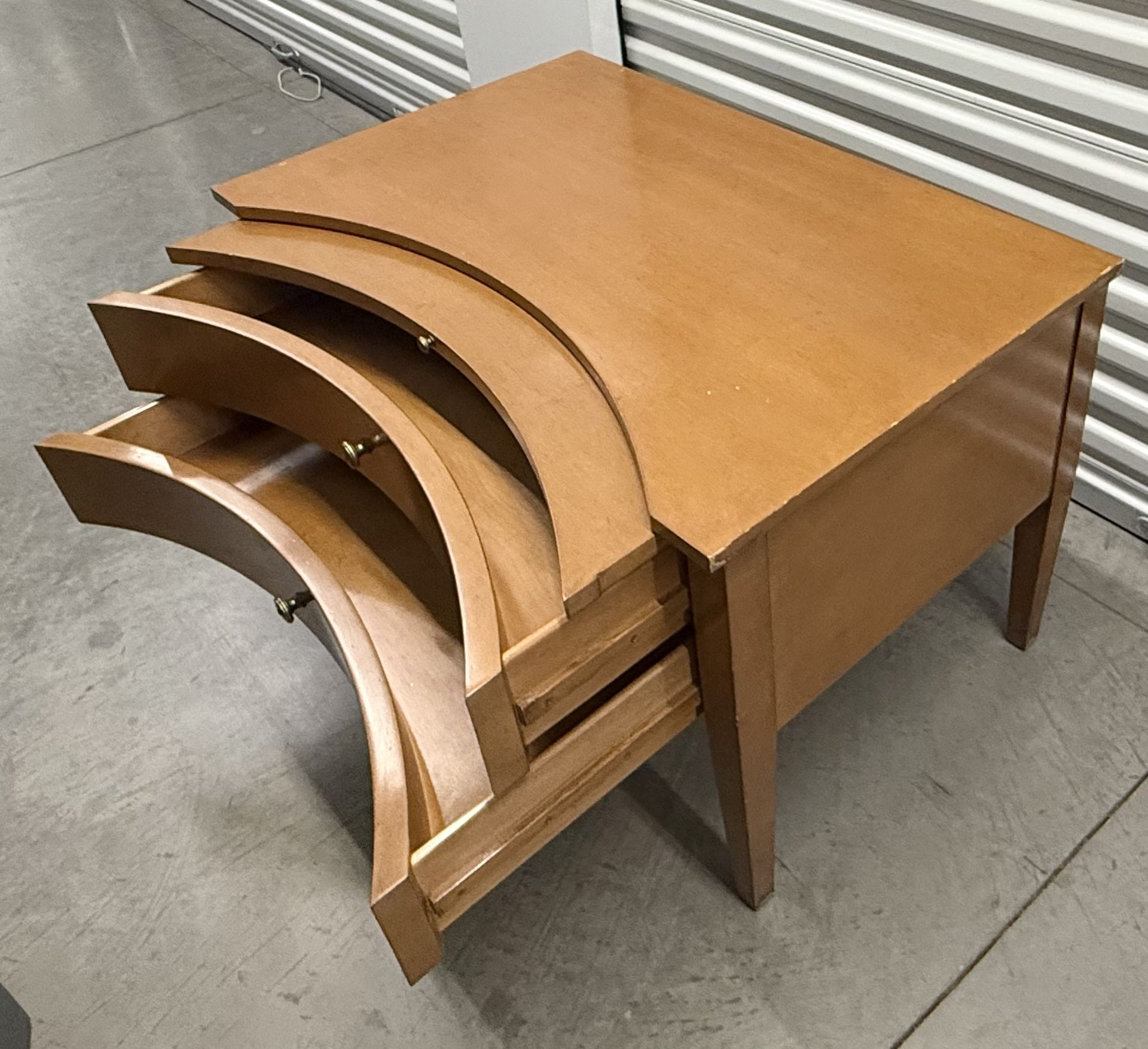 Mid Century Modern Nancy Corzine Low Dresser Two drawers and pull out desktop. With stamped signature. Measurements: 38” Length 24” Depth 25” Height Fantastic condition. See all photos.