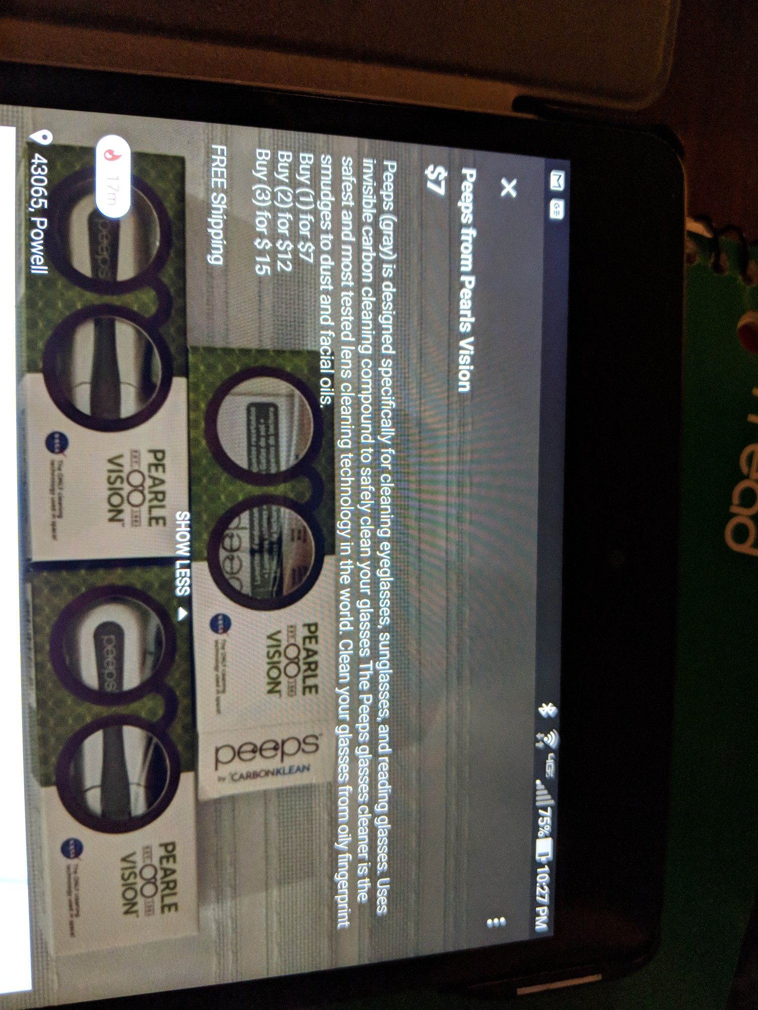 The Peeps eyeglass cleaners. $11 per unit. Free Shipping. 500 uses in each unit. Awesome for cleaning eyeglasses, sunglasses, and reading glasses. Removes smudges, oily fingerprints, and facial oils from lenses. Awesome product! Product is all new in unopened boxes.