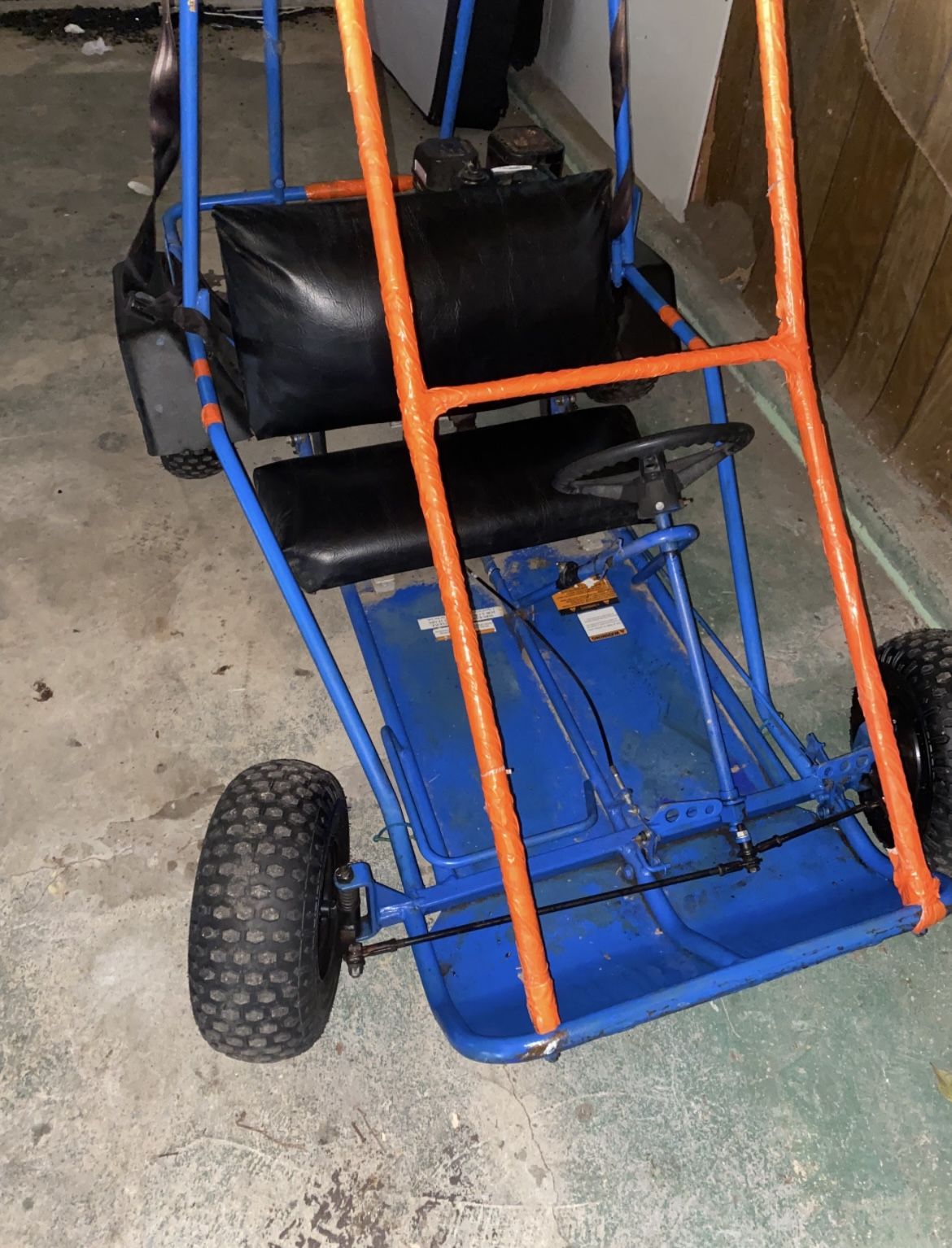 It’s a very reliable go kart Go’s between 30-35 MPH And I only needs 33 cents to fill up 2 people can fit Can also adjust the throttle