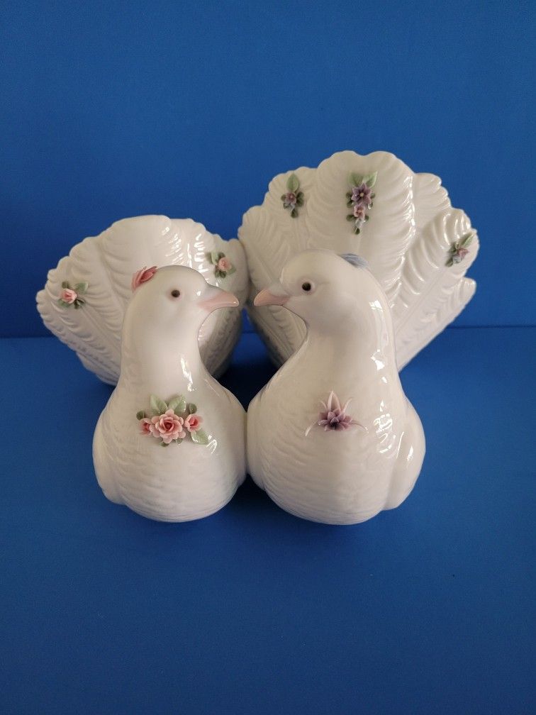 Vintage 1996 Lladro Couple of Doves with Flowers