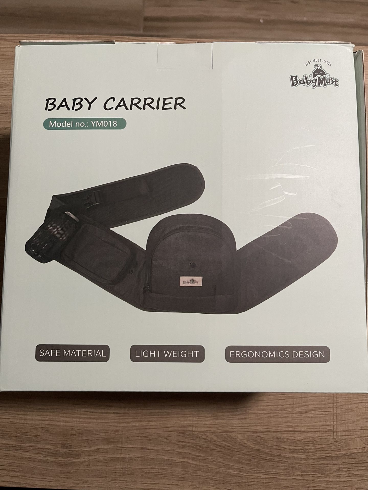 Brand new baby carrier Has pockets & bottle holder. Light weight, recommend weight 8-66 lbs.
