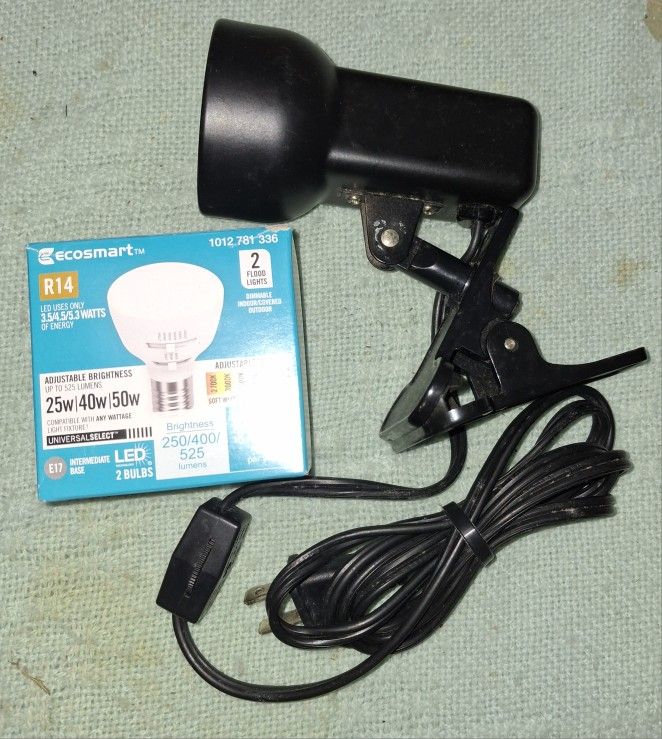 Mini Clamps On Plug In Table Lamp Plastic Works 4' Cord Black Unit