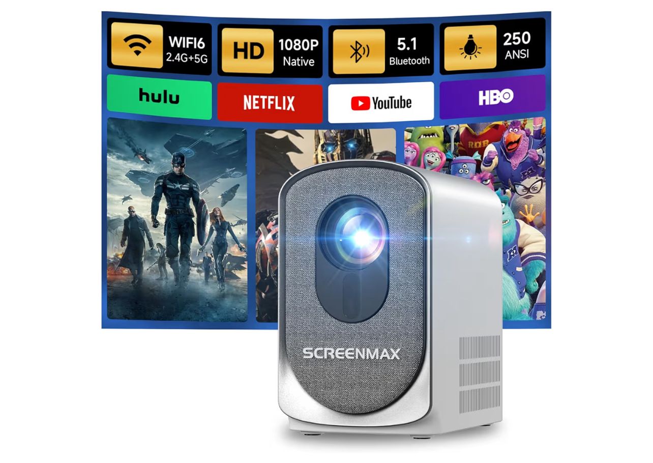Projector with WiFi and Bluetooth, 1080P Supported, Portable Projector for Outdoor & Indoor, Compatible with HDMI, Need Fire Stick for HULU, NETFLIX, YOUTUBE, HBO