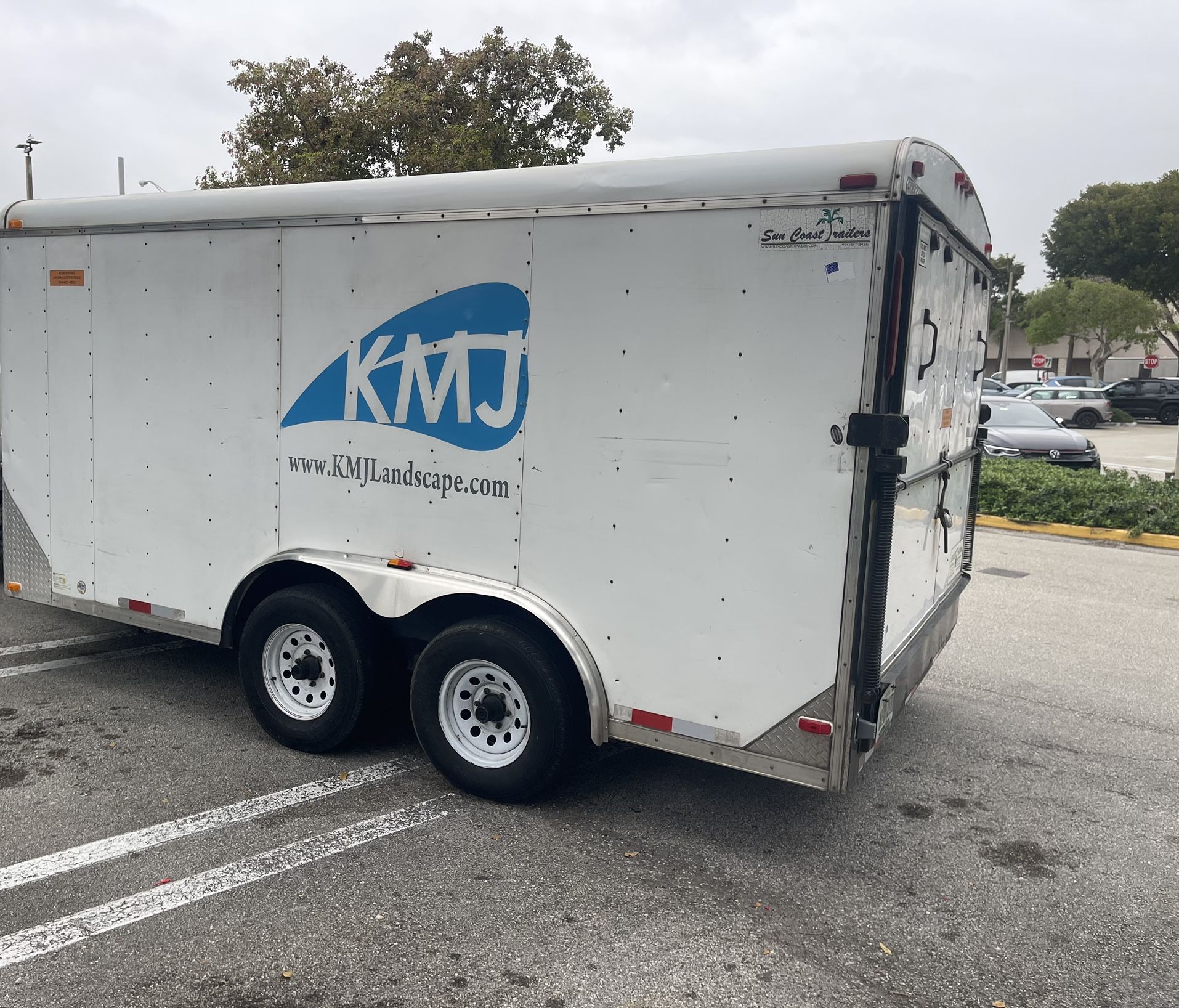 Good trailer Suncoast manufacturer dimensions are 8 x 14 dual axle. All lights work. Drop ramp with hockey puck locks. No leaks. Title in hand. Tool box front axle to store tools etc. Very solid trailer.