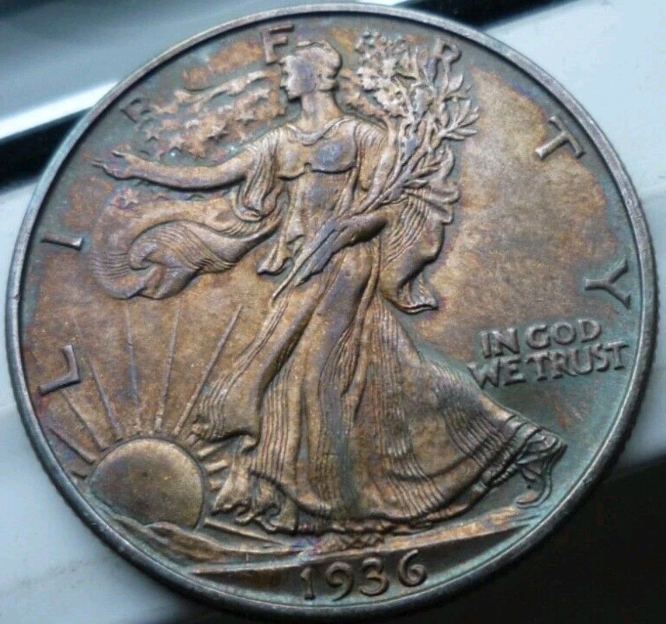 Nice toning 1936 D walking liberty. Uncirculated $150