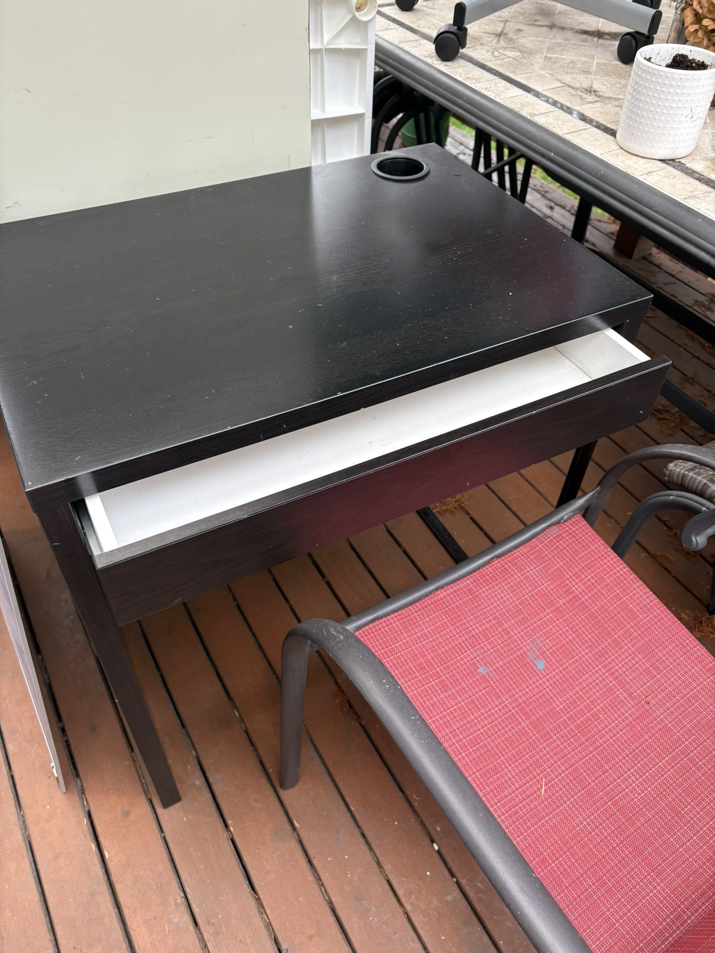 I have three pieces of furniture that I will sell for $75 for all three. A black desk, a twin headboard and a side table that’s in ok shape. You will need to pick it up.