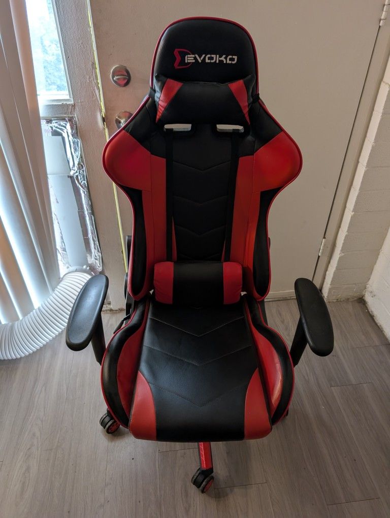 Devoko Ergonomic Gaming Chair Racing Style Adjustable Height High-Back PC Computer Chair with Headrest and Lumbar Support Executive Office Chair (Black/Red).