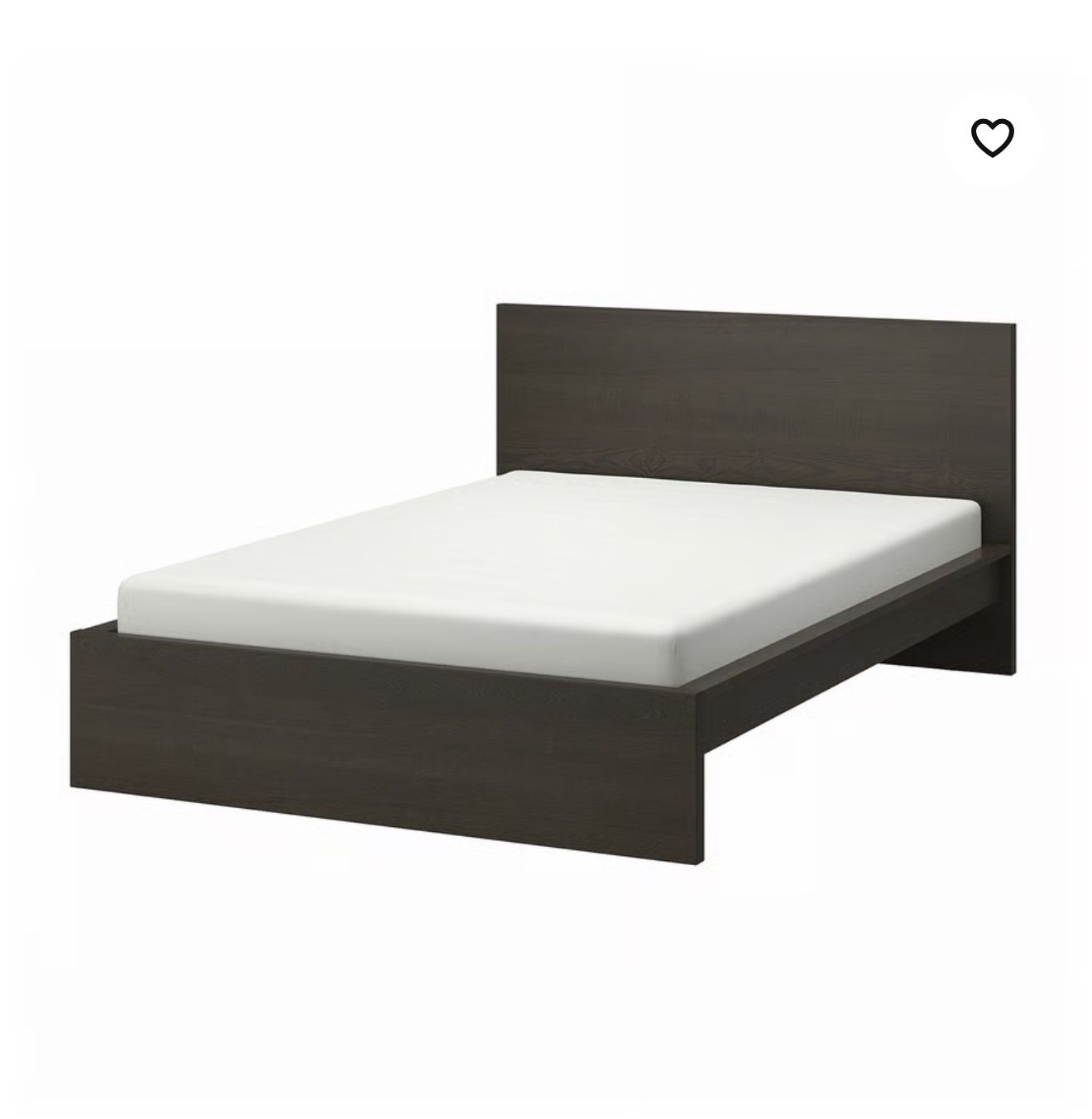 Full size black IKEA low profile bed frame with boards and mattress