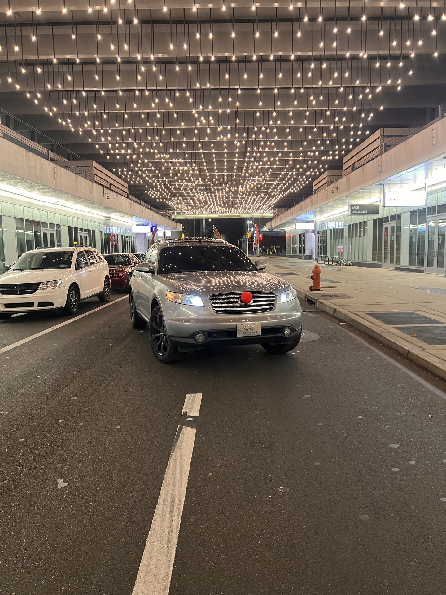 2004 Infiniti fx45 . Nothing wrong with it , no lights on dash . 132,380 miles on it . Front dash is cracking I have cover on it as you can see . 4.5L V8 . Straight piped . 5% tint on sides and back . 35% on windshield . Comes with a set of snow tires . Sunroof and tv in back works perfectly. Front driver seat Switch to move the chair forward and backwards just recently went out , every other control on driver seat still works .