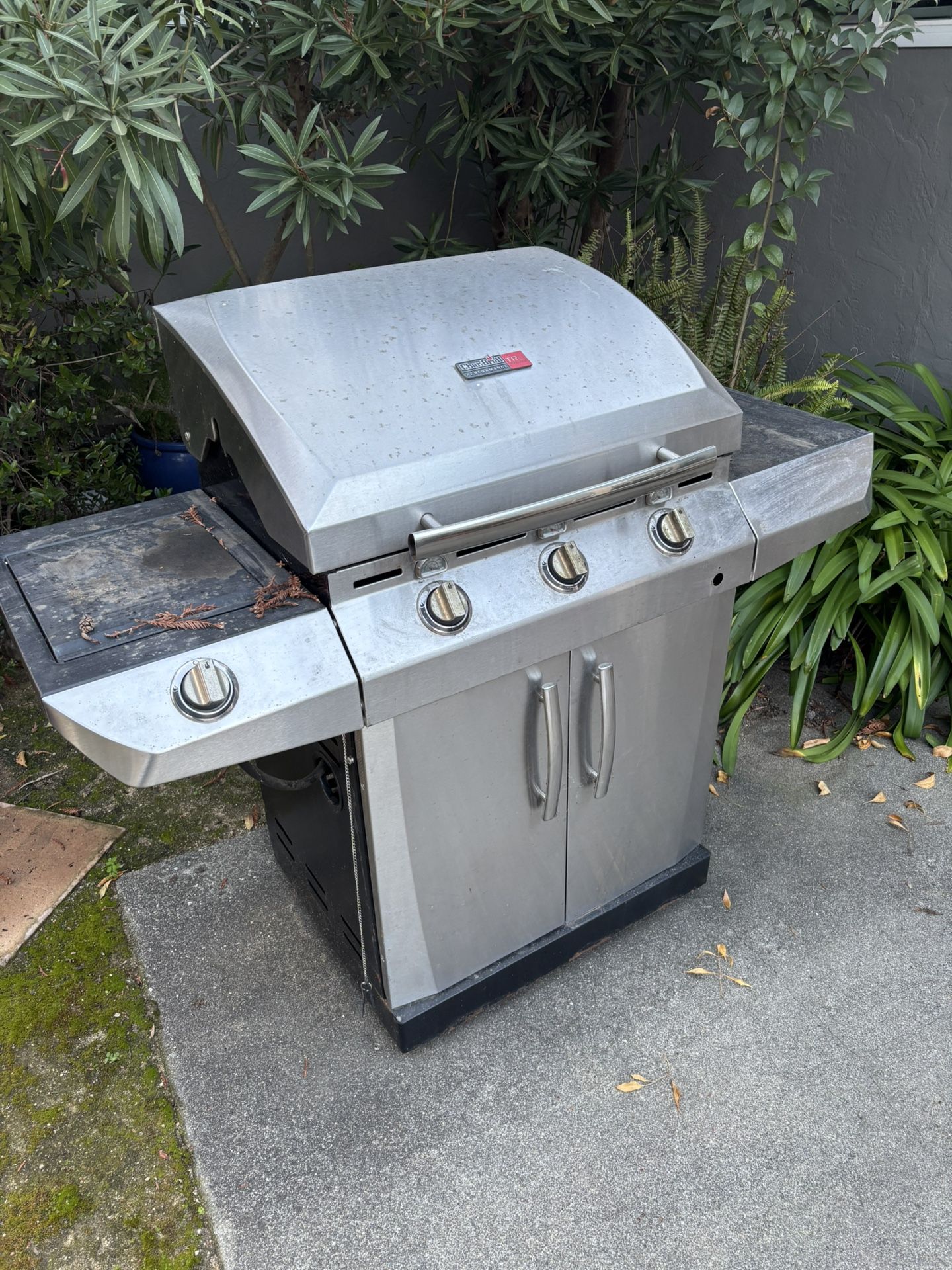 3 burner propane gas grill. In good working condition but auto starter does not work anymore. Need to manually light. Otherwise, good as new. Comes with propane tank
