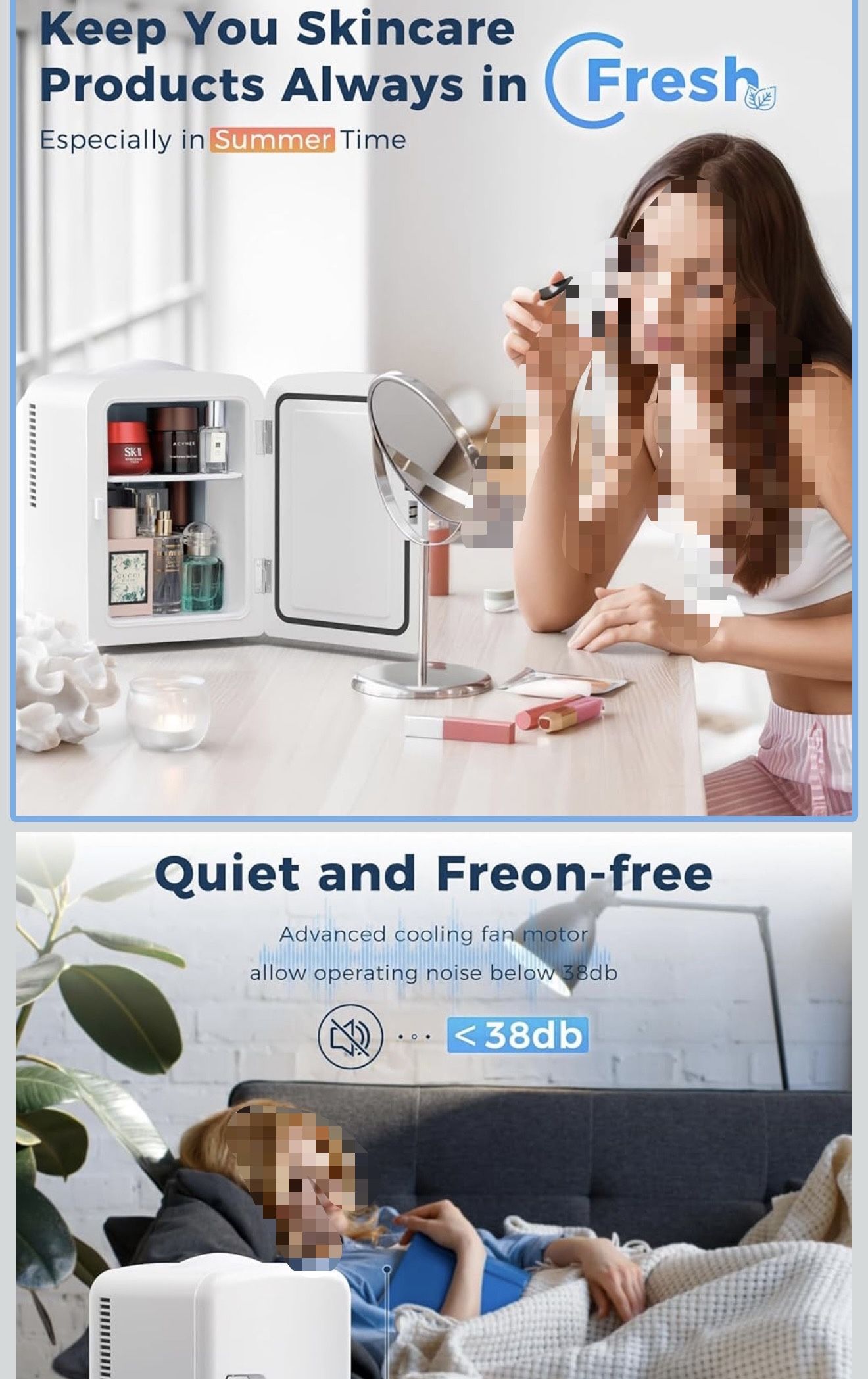 Compact Refrigerator, Portable Mini Fridge, Skin Care 4L Capacity/6 Cans, for Bedroom, Car, Office & Dorm, Small Cooler for Cosmetics, Beverage and Food, White