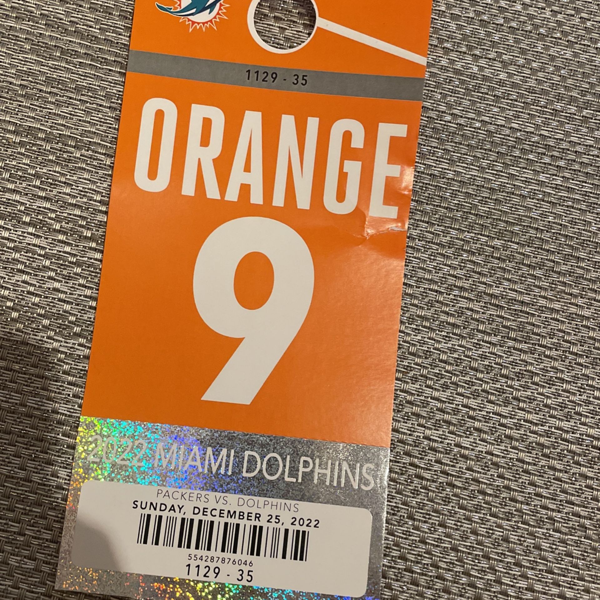 Miami dolphins orange parking pass 9