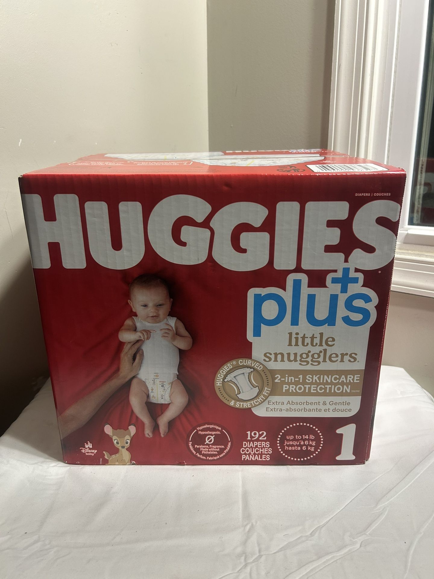 NEW Huggies Plus little Snugglers Diapers + Skincare Protection 192 Size 1 up To 14