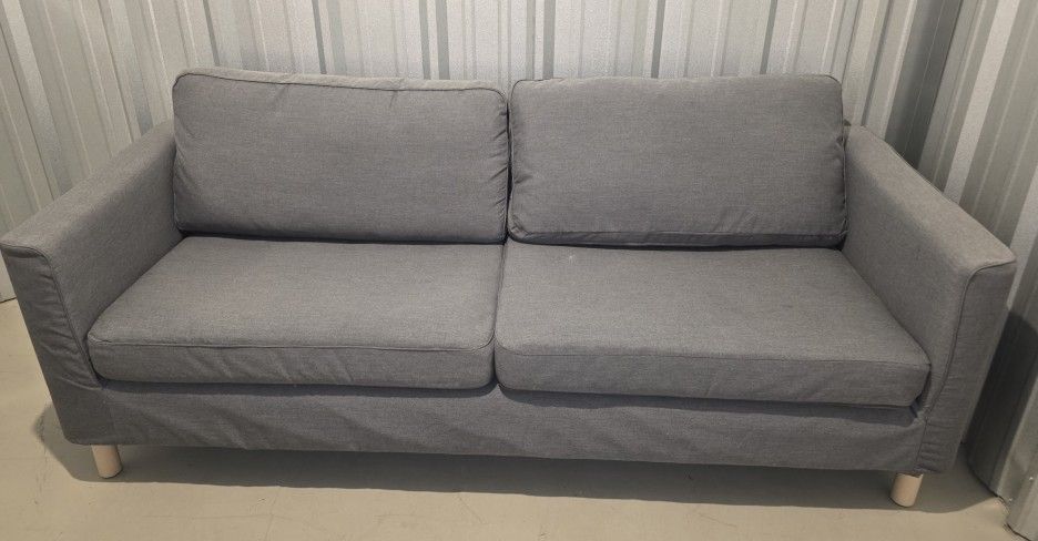 Timeless design with delicate details such as piping around the armrests and wooden legs. The legs leave space under the sofa in order to create an airy look and make it easier for you when cleaning. The pocket spring core of the seat cushions provides even comfort over the entire seating surface and gives your body good support. Pocket springs are a durable solution that makes the sofa retain both its shape and comfort for many years. The combination of seat height, seat depth and back cushions gives you good support so you enjoy a more upright sitting position on the sofa. This cover is made of dope-dyed Gunnared fabric in polyester. It is a durable fabric with a wool-like feel, a warm look and a two-toned mélange effect. The cover is easy to keep clean since it is removable and machine washable. 10 year Limited warranty.