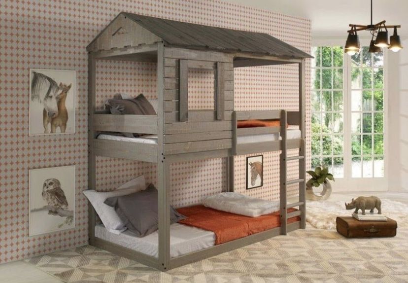 Brand New Cottage Rustic Gray Twin/Twin Bunk Bed