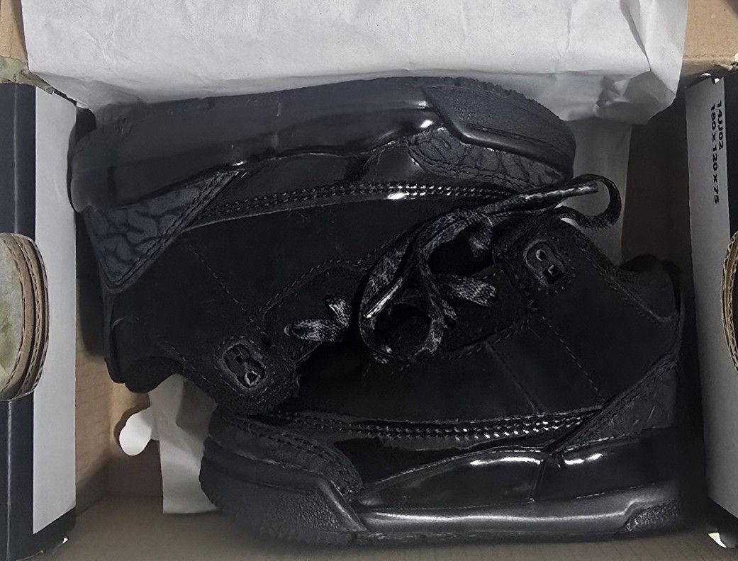 Jordan 3 Retro (TD) Black/Dark Charcoal, Size 4C