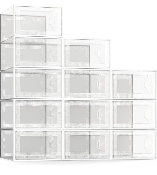 SEE SPRING 12 Pack Shoe Storage Box, Clear Plastic Stackable Shoe Organizer for Closet, Space Saving Foldable Shoe Rack Sneaker Container Bin Holder