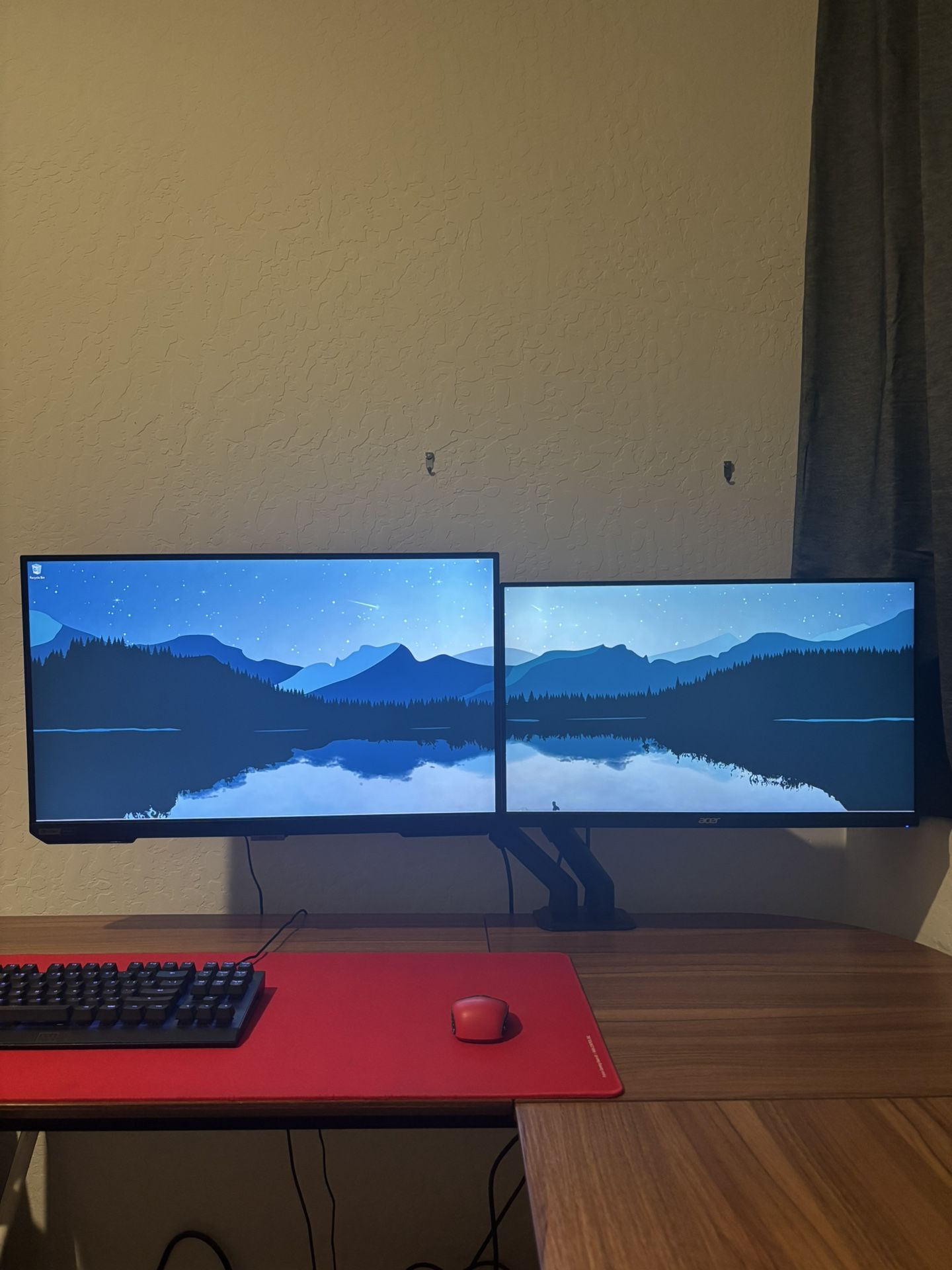 I have 2 monitors for sale. No scratches and are both in excellent condition. Willing to sell separately or together. If you buy both, I’ll throw in the mount for $20. Dual gas arm mount to freely move the monitors around. I have both stands for monitors. 27” Samsung Odyssey G40 240hz IPS (LS27BG402EN): $160 obo 24” Acer KA242Y 75hz IPS: $80 obo $220 obo for both.