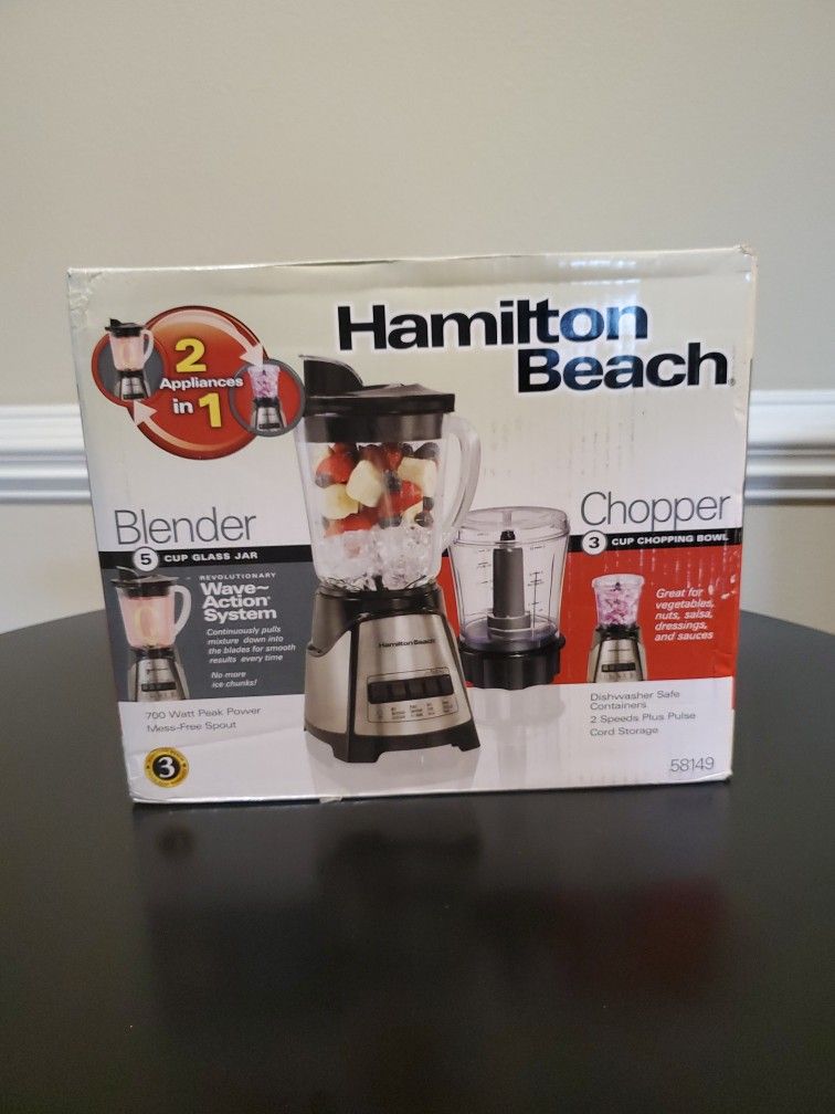 Hamilton Beach Power Elite Blender with 40oz Glass Jar and 3-Cup Vegetable Chopper, 12 Functions