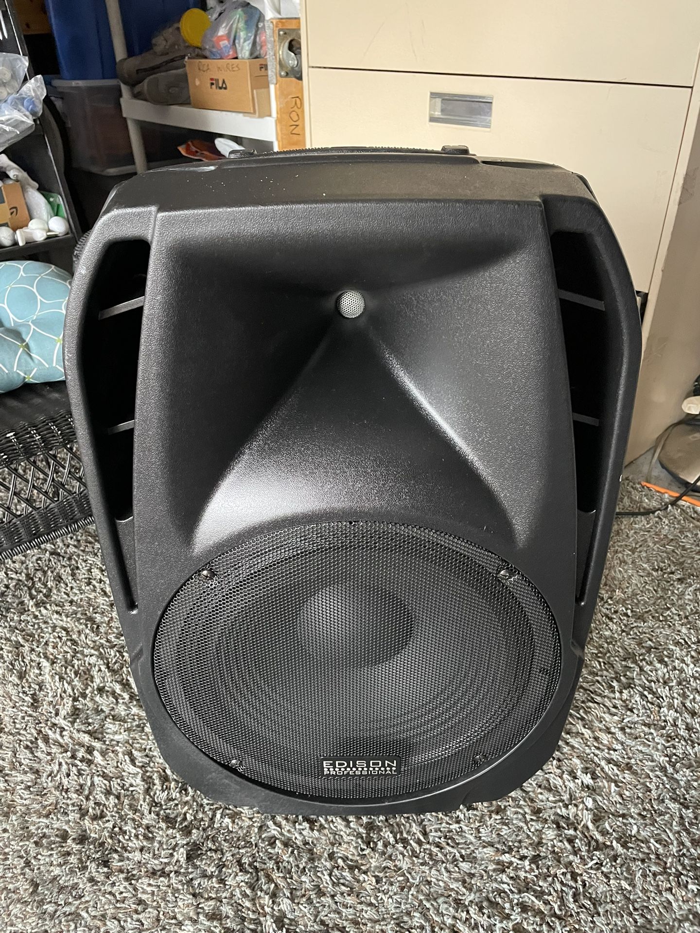 Very heavy, seriously loud and crystal clear. Bluetooth, 1 microphone input, radio with presets, auxiliary input, volume, bass, treble and all controls work as they should with no scratch sounds. Perfect for home parties or SJ. Note: USB not working and 1 microphone not working., also use a flashlight for display. Please come for a home demonstration. The price has been adjusted for fairness. M-2000 powered loudspeaker, engineered and manufactured by BriteLite Enterprises. The M-2000 includes a high-output compression driver, and a 15" woofer to produce an even, smooth studio quality sound in a sound reinforcement speaker. The design goal was to build a speaker with accurate playback, smooth dispersion of mid and high frequencies, and an ergonomic design for easy transport and setup. The result is a sound reinforcement system dynamic enough to use at home, in the studio, parties, or in home theater. Features * 2-way Bi-amplified Active Speaker * 15" Long-throw woofer with high-temperature voice coil * Ultra-wide, smooth dispersion of high and mid frequencies * Mic/Line input and pass-thru connector * USB & SD Card input supports .wav & MP3 * Bluetooth Compatible * Includes FM Radio w/Antenna * Multi-function remote control * Stand/Pole-mountable Image Description: A side view of the Edison M-2000 loudspeaker, showing the front grille with the Edison Professional logo. The rear panel is also visible, displaying various input and output connectors, controls, and the power switch. Superior Sound!!! Tradition PSL