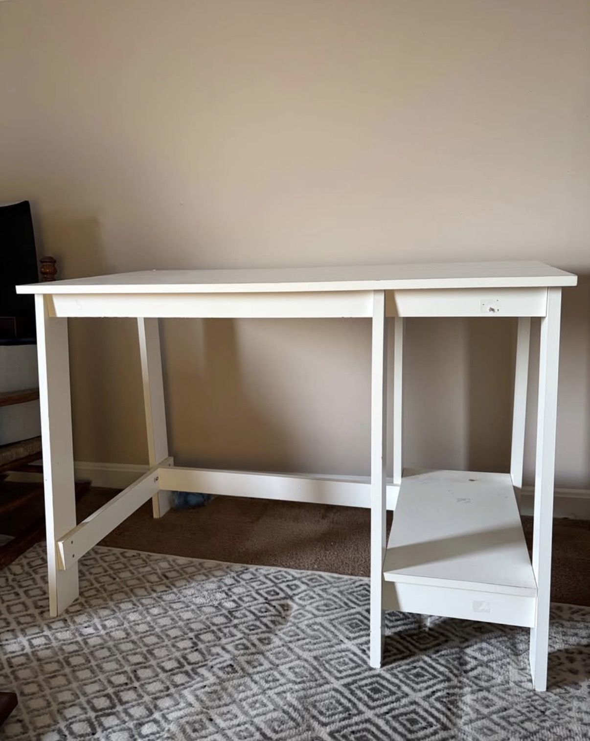 White desk used but in good condition. It is a little wobbly but stable. It also has some scuff marks on the legs W 21in L 40.5in H 27.5in Pickup in Arlington,