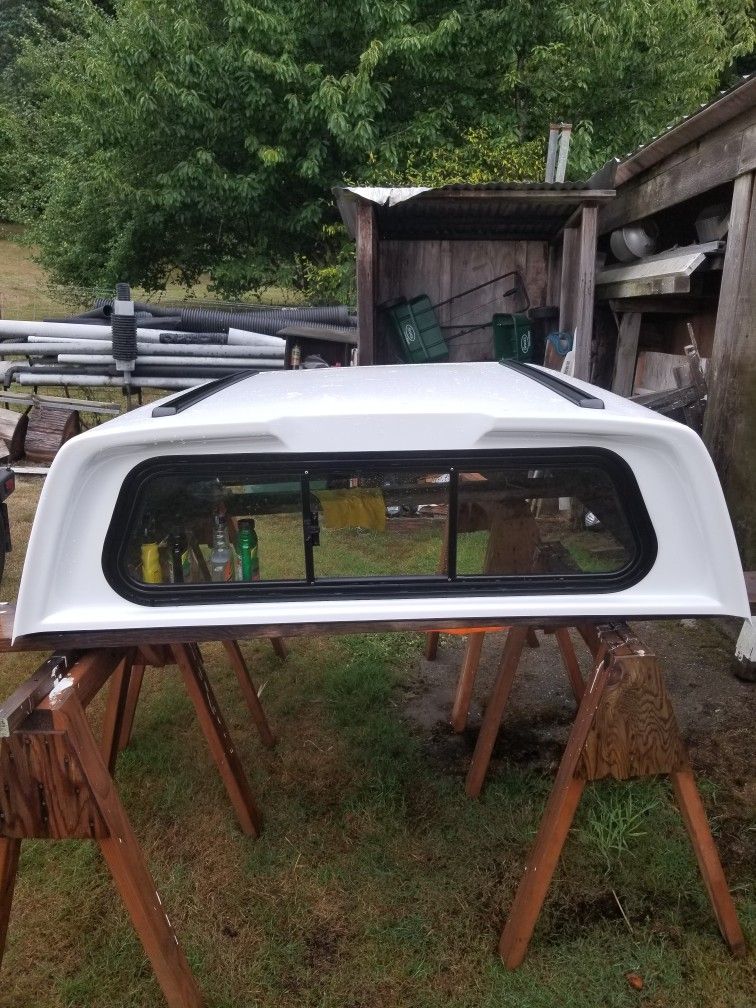 For a 2nd and 3rd gen Tacoma. Color matched super white. Has built in pet screens for dogs, sliding side windows and tilt down front window for easy cleaning. Comes with prewired brake light, bed power, bed light, and auto lock with tailgate. You'll have to get your Taco wired up and she's ready to go!