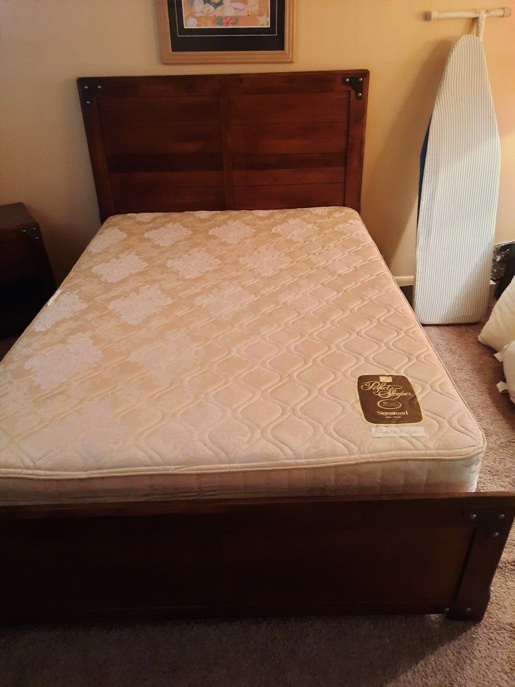 Ashley Furniture bedroom set. Barely used, was in spare bedroom. Lamps included. Excellent condition. Bed, dresser, nightstand.